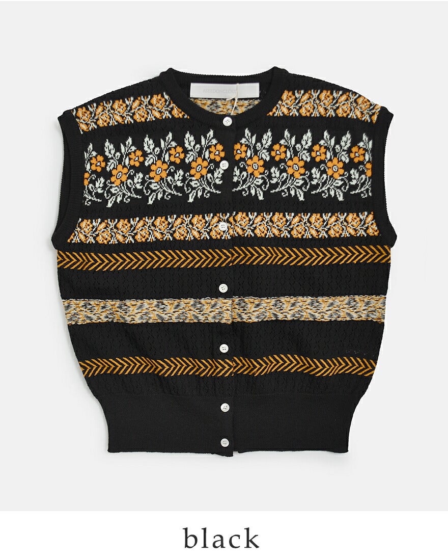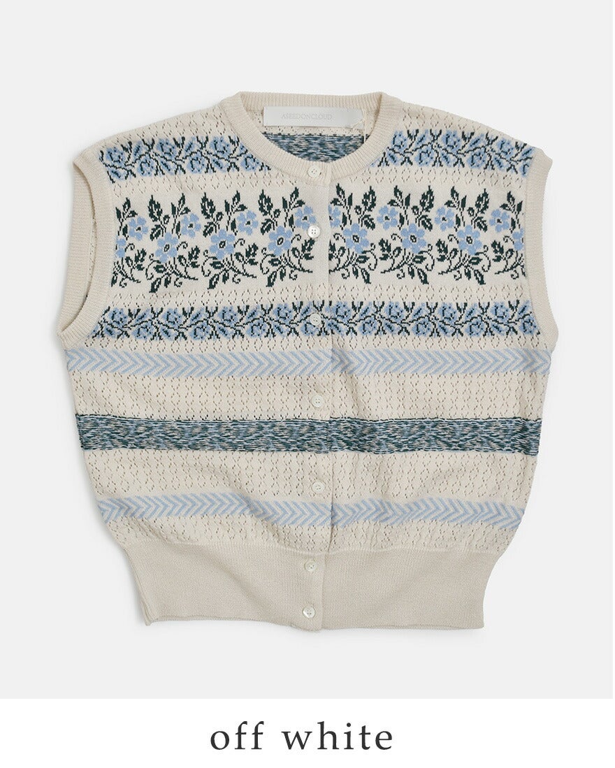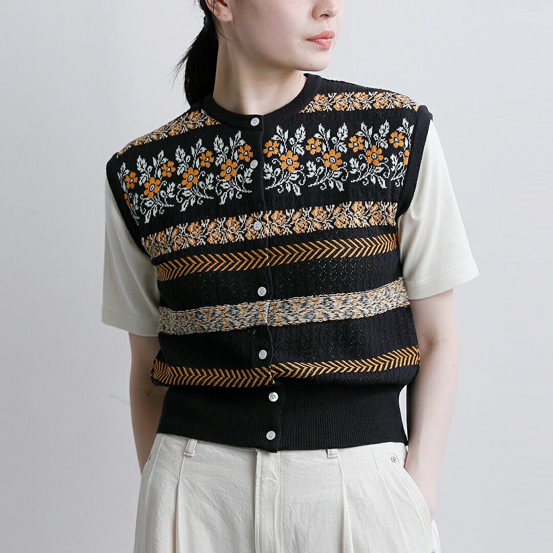 オランダフォーレンダム民族衣装モチーフニットベストジャガード編みレース編み立体的模様芸術的アクセントコンパクトデザインレイヤード 【クーポン対象】ASEEDONCLOUD アシードンクラウド フラワージャガード ニット ベスト “Flower Jacquard Knit Vest” 261806 レディース 2026ss新作 春夏