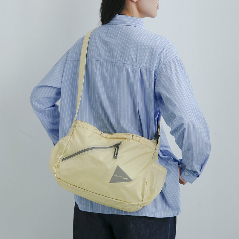 パッカブルコーデュラリップストップ撥水耐水軽い軽量旅行アウトドアポケット付き折りたためる携帯サブバッグショルダーバッグ and wander アンドワンダー シル ショルダーバッグ sil shoulder bag 574-6985133 ユニセックス 2026ss新作 春夏