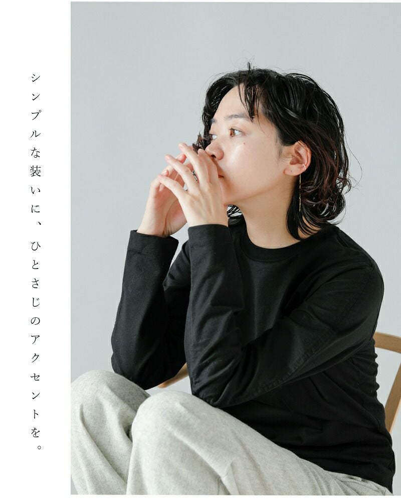 シンプルなフックにチェーンを組み合わせたイヤーカフ。少し長めのチェーンならではのゆったりとした甘くない揺れ感が、目を惹きます。シンプルなチェーンデザインは他のアイテムとのコーディネートもしやすいので、自由な組み合わせをお楽しみください。