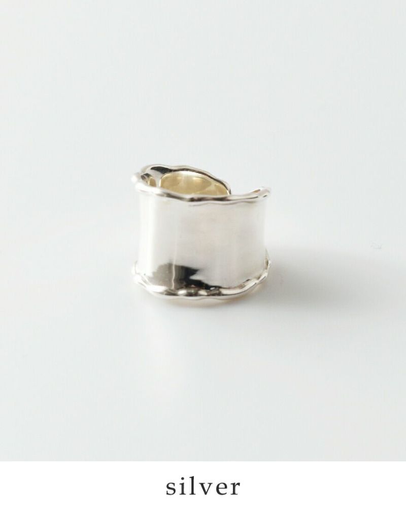 ともすればワイルドで男性らしさを感じさせるボリュームシルバーリングをディテールのこだわりでエレガントに。ヘムラインのたおやかな揺らぎデザインが全体に柔らかさを加えて大人女性にふさわしい質感に仕立ててくれます。