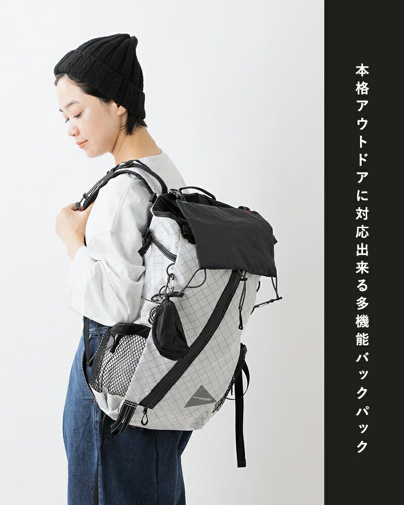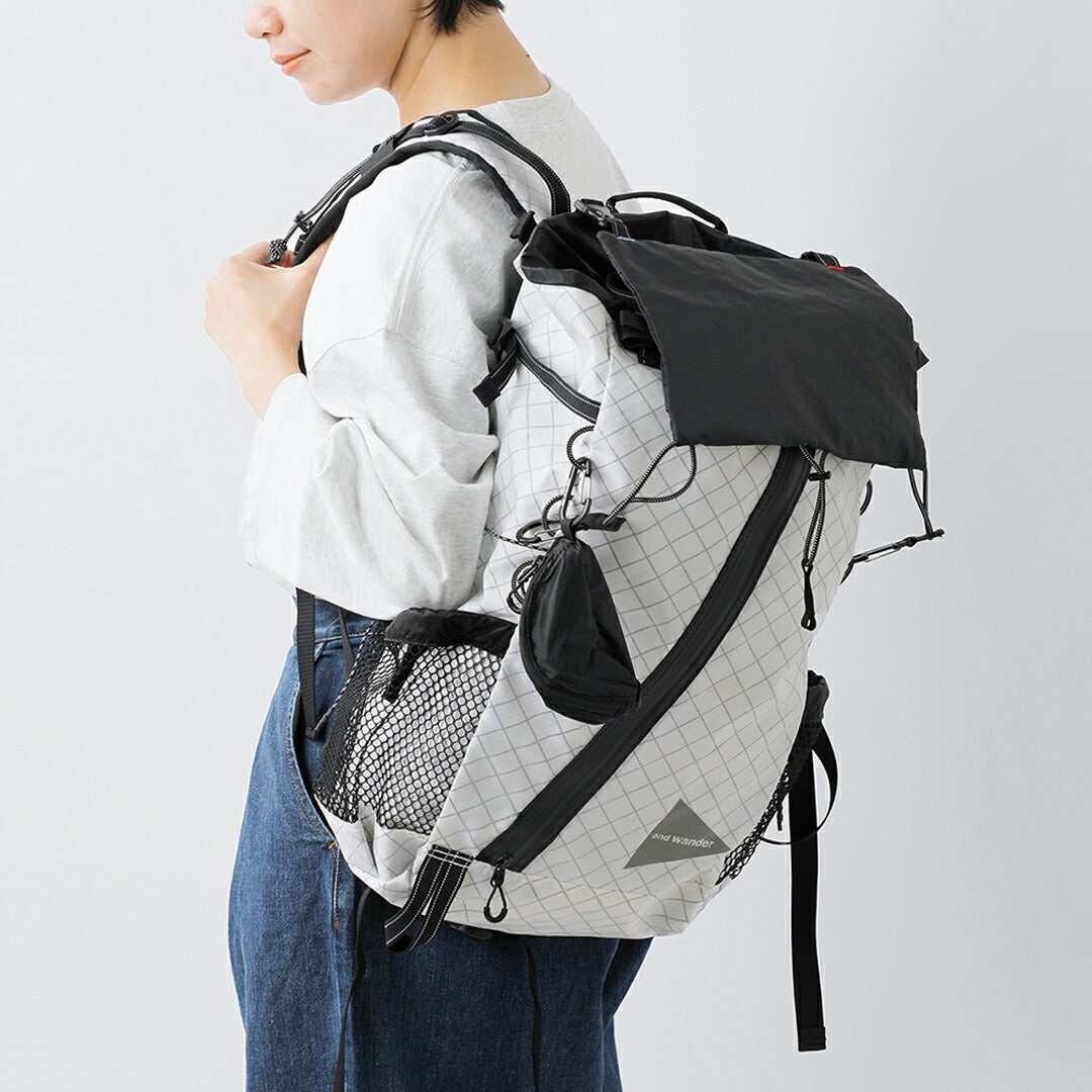 旅行にも使える25-32L軽量で高耐久かつ高い防水性を持つハイスペック素材であるダイニーマコンポジットファブリックを使用した全天候型のパックパック and wander アンドワンダー ダイニーマ 軽量 バックパック UL backpack with Dyneema(R) 574-5975208 ユニセックス 2026ss新作 春夏