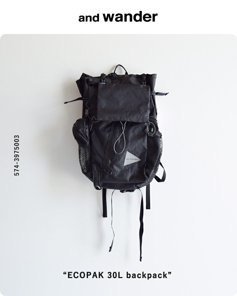 軽量で高耐久かつ高い防水性を持つハイスペック素材であるECOPAKを使用した全天候型のパックパック and wander アンドワンダー エコパック 30L バックパック リュック ECOPAK 30L backpack 574-5975202 2026ss新作 春夏 ユニセックス