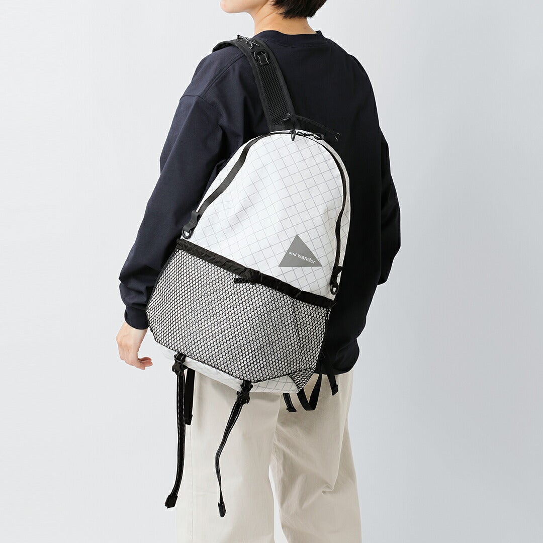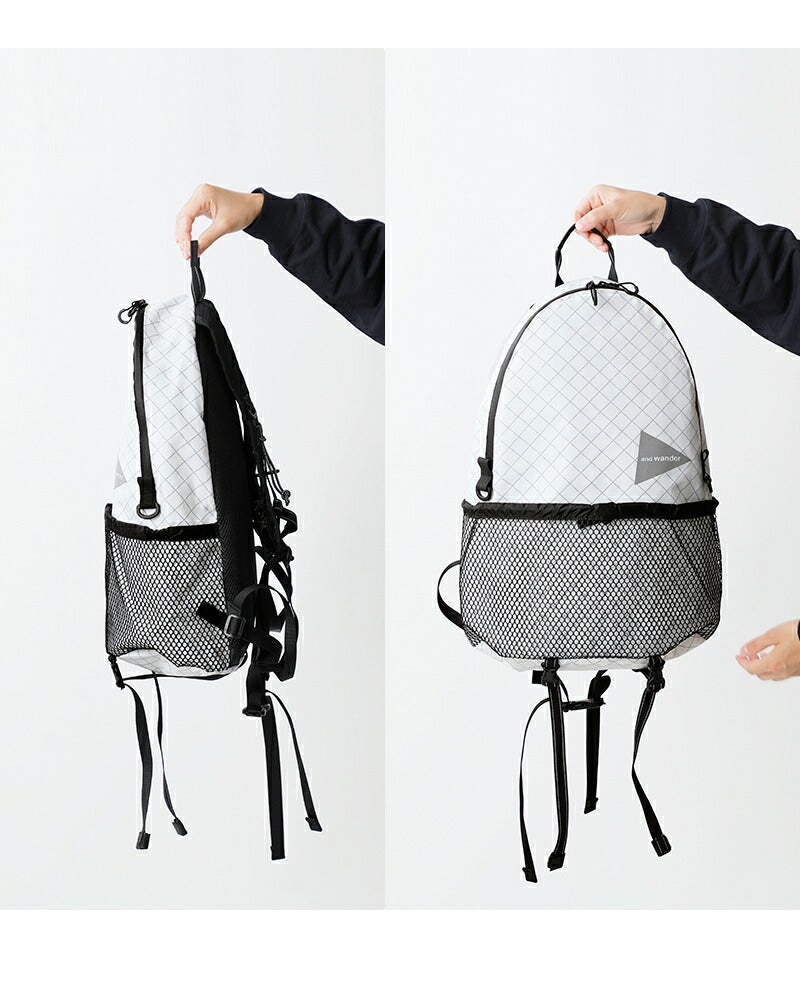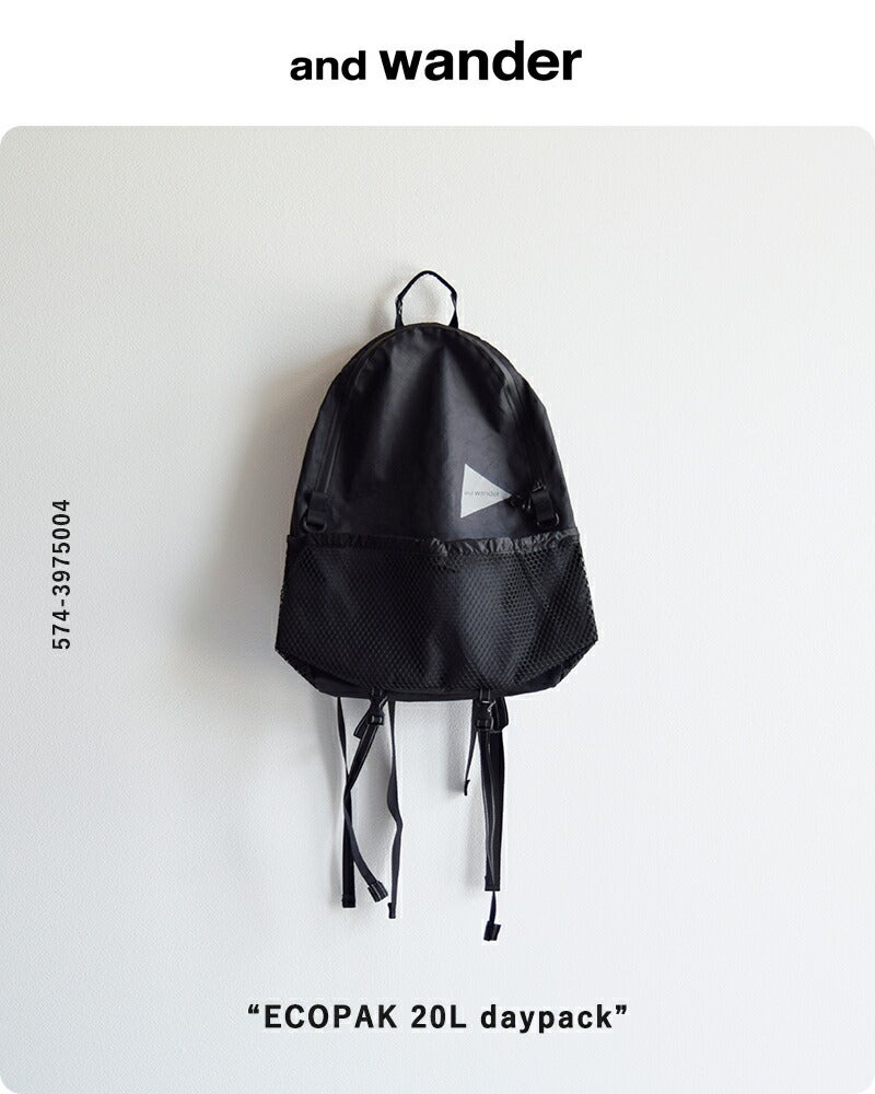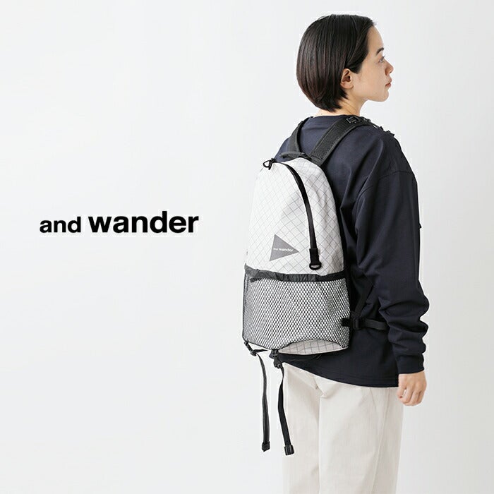 日帰り登山やアウトドアからタウンユースまで幅広いシーンで使える20Lメッシュポケット付きバックパック and wander アンドワンダー PE/CO 20L デイパック リュック バックパック PE/CO 20L daypack 574-5985223 ユニセックス 2026ss新作 春夏