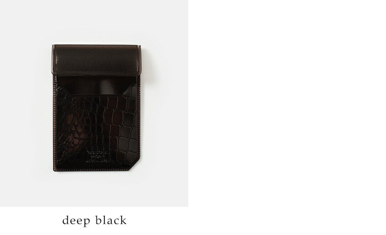 クロコダイルとシュリンクレザーの表面感をエンボスにて表現したシリーズアイテム。