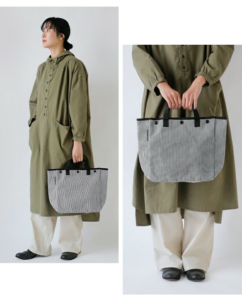本当は、出来るだけカバンに見えない 袋状のモノがいいと思うんです。 少々持ち難くても、カバンらしくないモノが 私は理想的です。手で持ちたい。肩に担ぎたい。 背中に背負いたい。便利を追求している間に モノのかたちや色は限定され、画一化され、 次第にモノに対する興味が失われていきます。 現実的には、いろいろな制約を踏まえて デザインをしますが、利便性に勝るささやかな ときめきが、その袋状のモノに宿ればと思います。