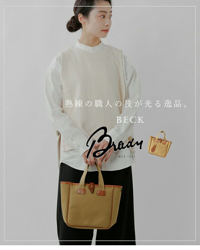 Brady(ブレディ)より、ツイルハンドバッグ“BECK”のご紹介です。コンパクトなフォルムで使いやすさにこだわったミニトート。耐久性に優れた作りで、身の回りの貴重品を入れるのにちょうどいいサイズ。バッグに使われている金具はすべて馬具に用いられる高品質の真鍮を使用しており、高い耐久性を誇ります使い込むほどに味わいを増していき、長く愛用いただける逸品です。