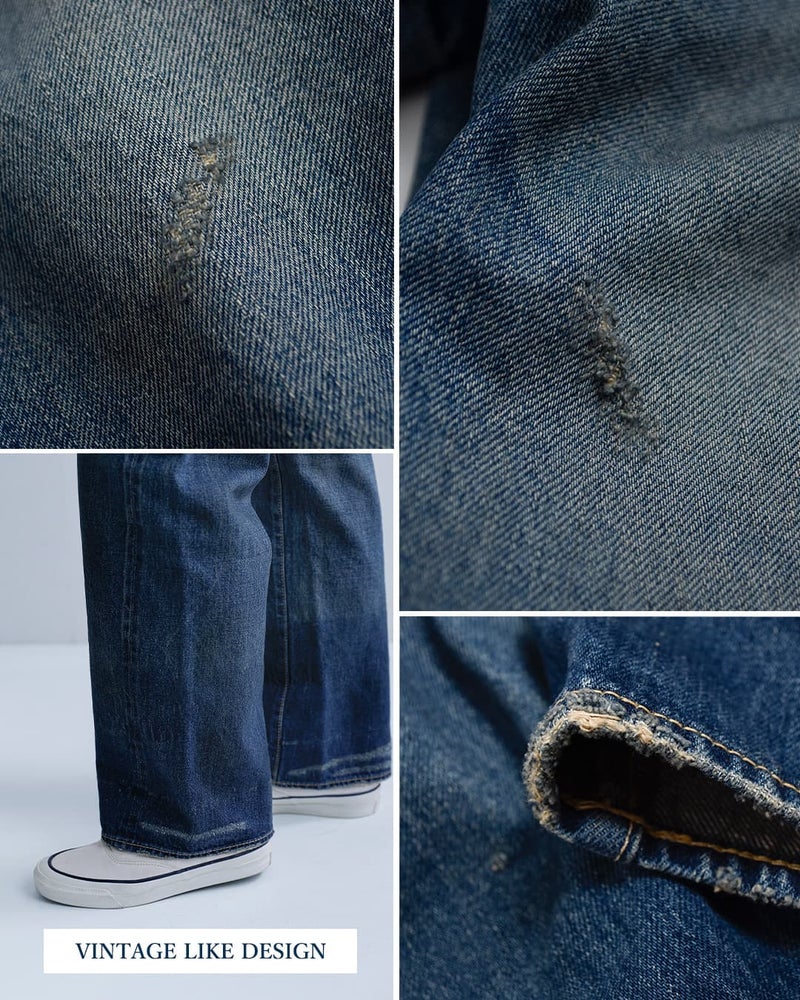 自然な色落ちやダメージ加工を施し、使い込まれたようなヴィンテージ感漂う仕上がりのデザインが魅力です。