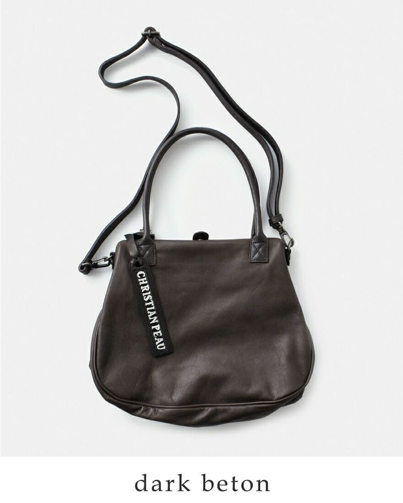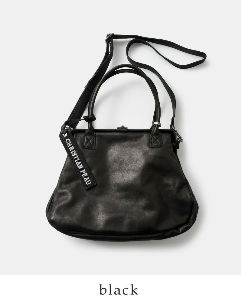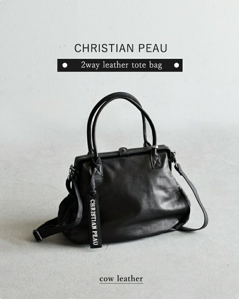 CHRISTIAN PEAU(クリスチャン・ポー・クリスチャンポー)より、2wayレザーがま口トートバッグをご紹介します。重厚感のあるレザーと、がま口デザインがアンティーク品のような雰囲気のあるバッグ。ストラップ付きで、ショルダーバッグとしても、トートバッグとしてもお使い頂けます。普段の服に合わせるだけで、大人っぽく洗練されたコーデにしてくれる、上質感が溢れる逸品です。