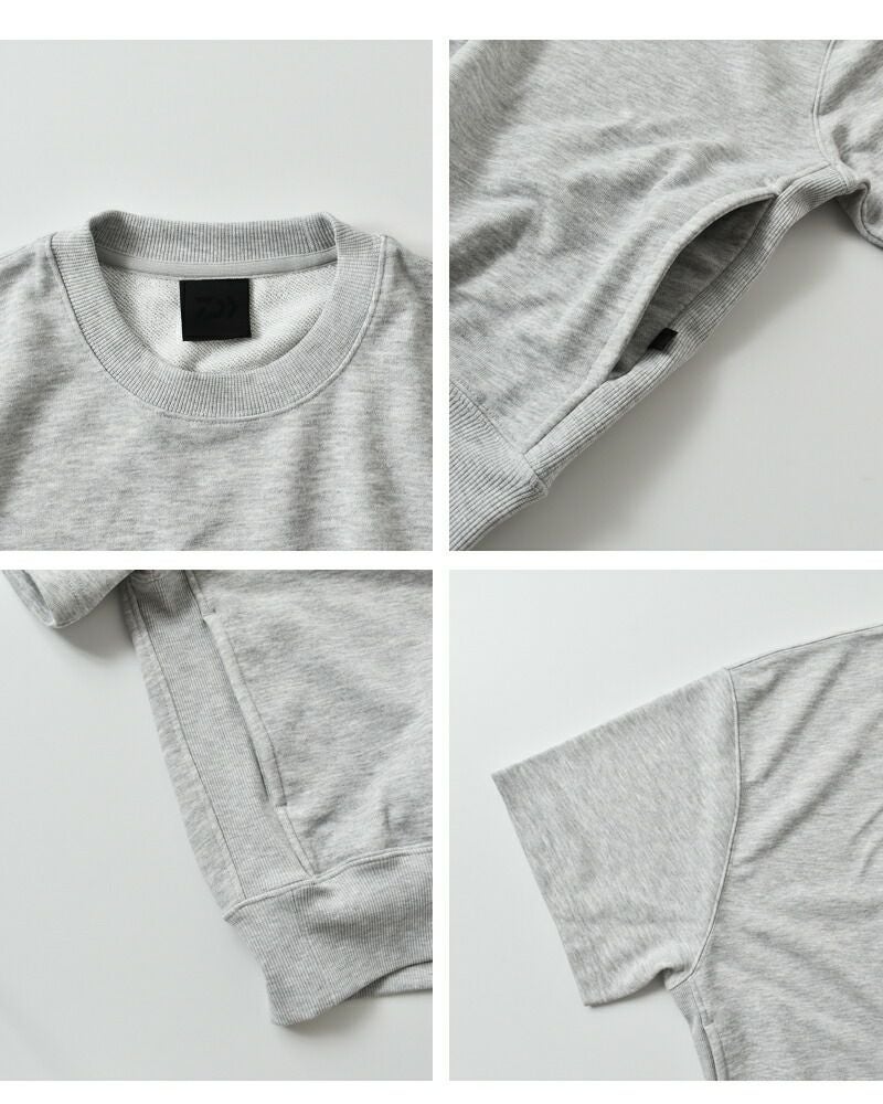 DAIWA PIER39(ダイワピア39)より、テック スウェット クルーネック ショートスリーブ プルオーバー “W's TECH SWEAT CREW S/S”のご紹介です。コットンタッチのヘビーウェイト裏毛を使用した、シンプルな半袖スウェットシャツです。ゆったりとしたシルエットですが、ネックや裾のリブをキツめに調整し釣りの際に邪魔にならないよう細かいフィッティングにこだわりました。清涼感のある素材感は、アフターフィッシングに最適な一枚です。