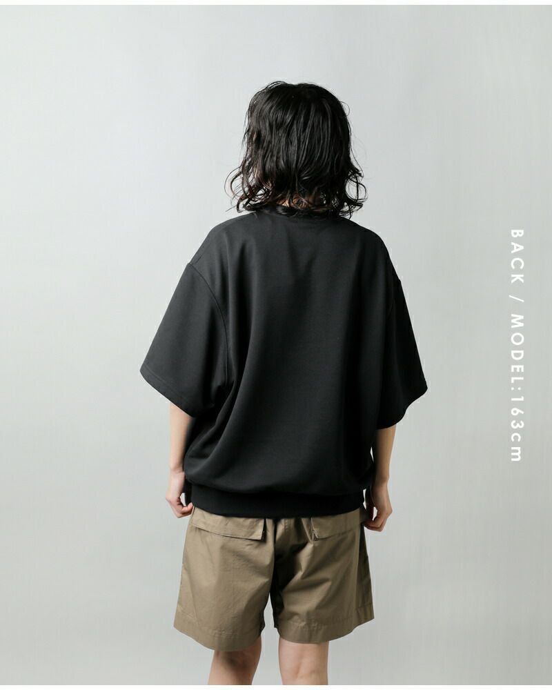 <DETAILS> ●コンパクトな開きのクルーネック。 ●両サイドにポケットを配置。 ●サイドに伸縮性のあるフライス地を使用。 ●裾口は幅広のしっかりとしたリブ仕立て。 ●ゆとりのある身幅とドロップショルダー。