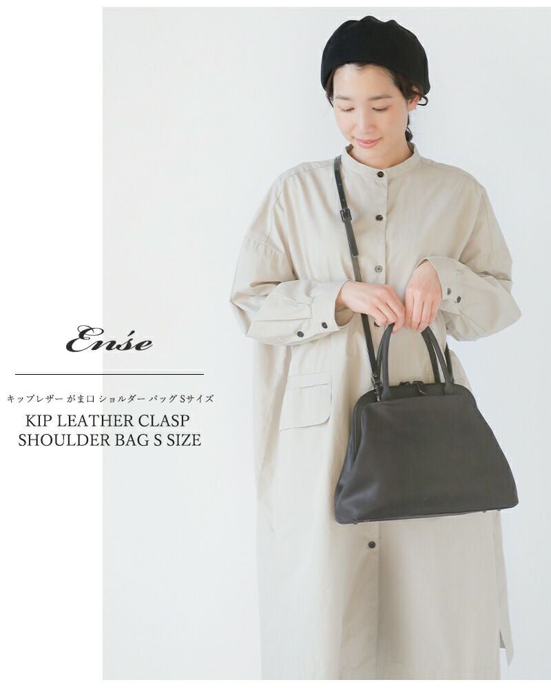 Ense(アンサ)よりキップレザー がま口 ショルダー バッグ Sサイズ “gamaguchi bag S”のご紹介です。シンプルと機能性を求めた、Enseのがま口シリーズのSサイズ。ミリ単位まで計算された職人泣かせな隠しポケットが付属しているところが魅力の一つです。また取り外しできるショルダーベルトが付属しているのでその日の気分に合わせてショルダーバッグとしてもハンドバッグとしてもお使いいただけます。がま口バッグの小さいサイズが欲しいというお声を元にできたこのバッグはいろんなシーンでお使いいただける存在感を感じさせます。