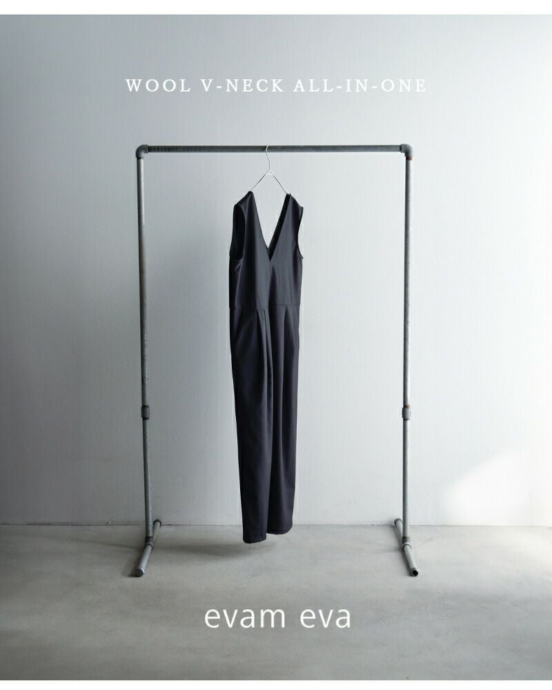 evam eva(エヴァムエヴァ)より、ウール Vネック オールインワンのご紹介です。