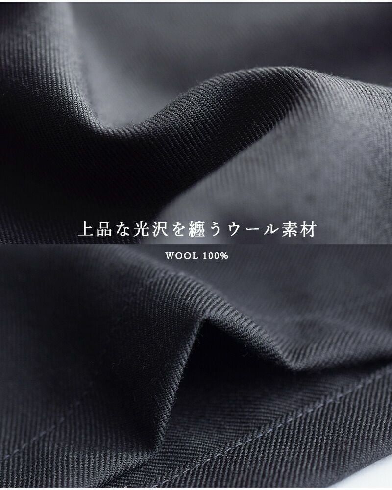 きめ細やかに織り上げたウール100%素材を使用し、表面にはさりげない光沢感を持たせた、品のある表情が魅力。