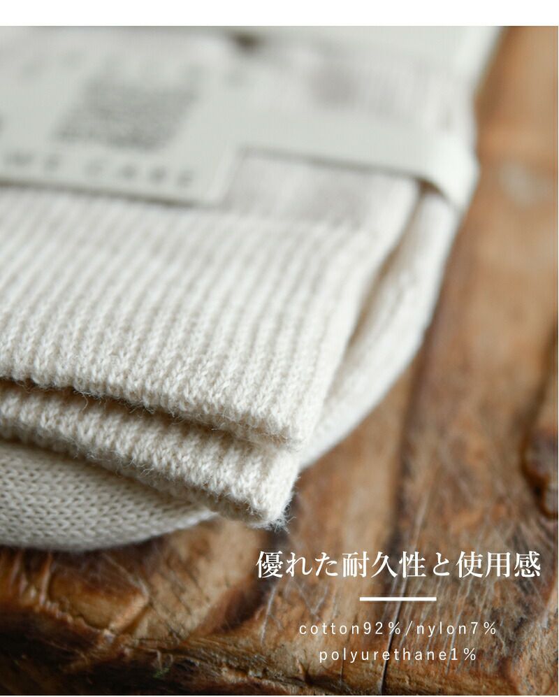 上質なコットンを使用し、その含有率がとても高いため、肌に優しく、敏感な肌の方にもおすすめです。また環境を配慮し栽培されたコットン「WE CARE COTTON」と、リサイクル糸の使用することで、サスティナブルなソックスへとリニューアルしました。一年中いつでも、どんなシーンでも、子どもから大人、お年寄り方までどなたでも愛用していただきたいという想いから、「FAMILY SOCKS」と名づけられいます。普段のカジュアルな装いからきれいめな装いまで、幅広く活躍する汎用性の高いアイテムです。