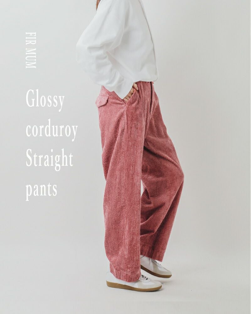 FIR MUM(フィル マム)より、グロッシー コーデュロイ ストレート ボタンフライ パンツをご紹介します。光沢のあるグロッシーコーデュロイを使用した、ゆったりとしたワイドシルエットのコーデュロイパンツです。太畝で、ふっくらとしたコーデュロイは温かみがあり、秋冬らしい季節感を楽しめます。ゆったりとしたワイドストレートのシルエットで、パンツの美しい形も堪能できます。