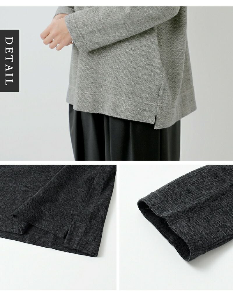 抜け感と立体感の出るヘリンボーンパターンのニットプルオーバー