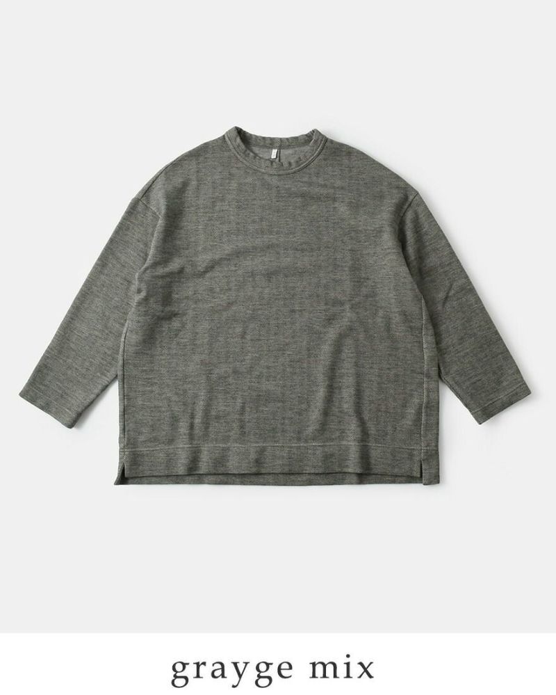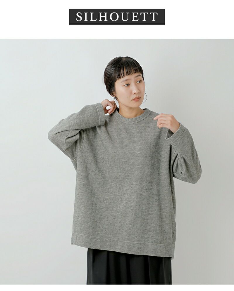 どんなコーデにもはまるクルーネック。肩を落としたドロップショルダーで抜け感を作ります。