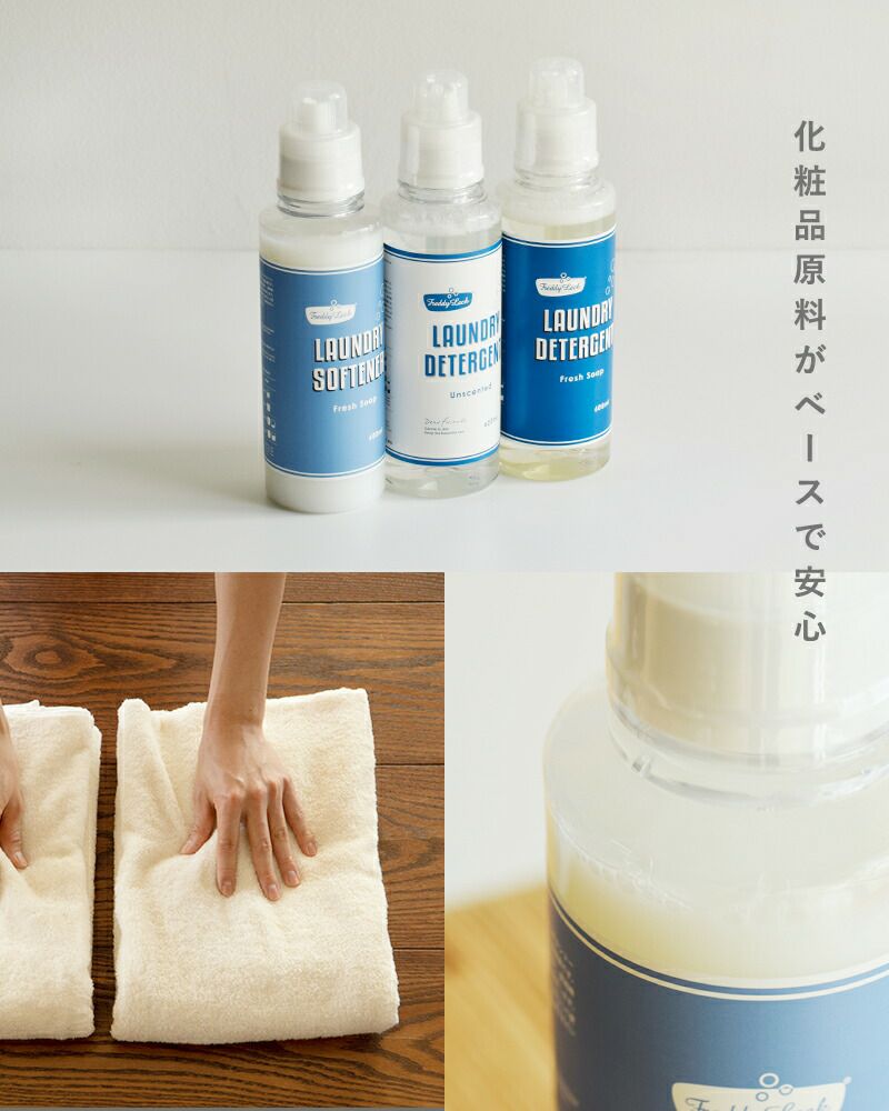 フレディ レックのランドリー洗剤・柔軟剤は、衣類と肌にやさしく、地球環境にも配慮した配合。さわやかなフレッシュソープの香りで、おうちのお洗濯を楽しくしてくれます。