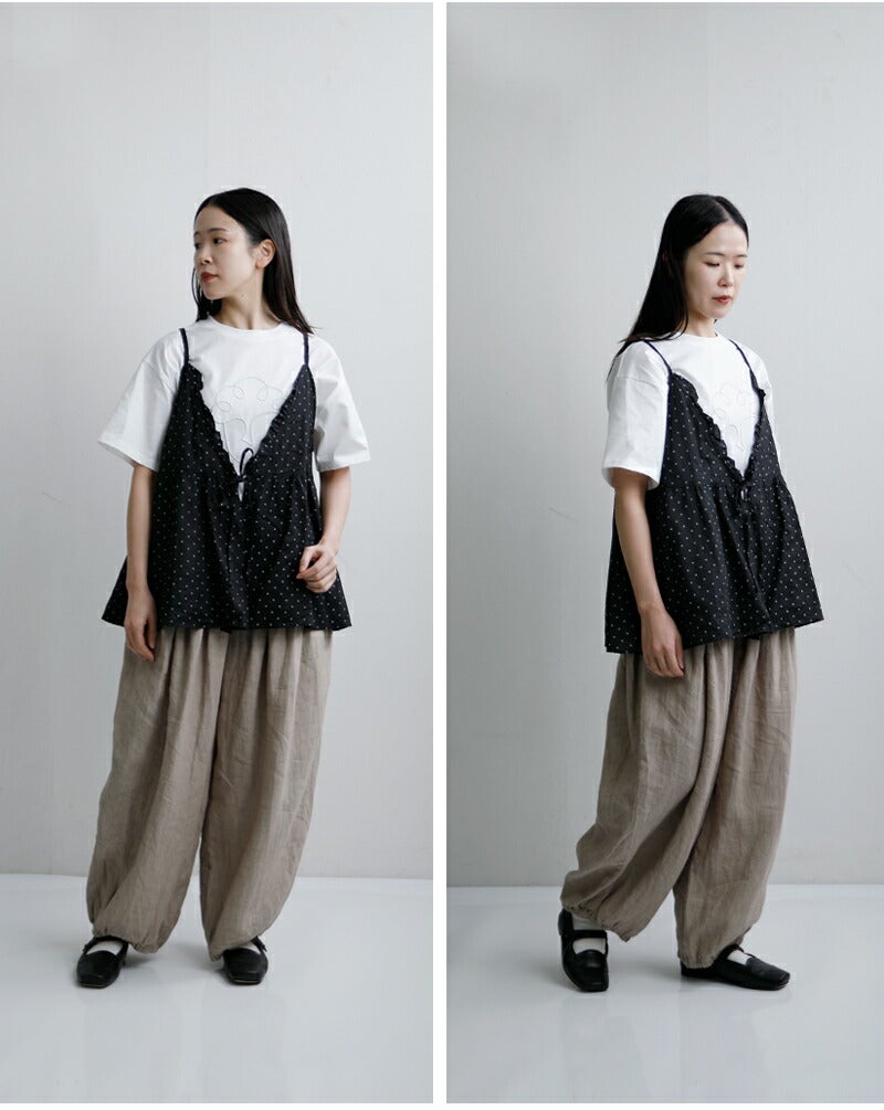他の画像を見る ラミーリネン麻前後2wayスモールドットカシュクールフリルAラインキャミソール 【クーポン対象】Gauze# ガーゼ ラミーリネン 2way スモールドット カシュクール キャミソール ORIGINAL SMALL DOTS CASHE COEUL CAMISOLE g1168 レディース 2026ss新作 春夏 ¥ 20,900 ¥ 20,900 税込 クーポン対象 販売期間 2026/04/15 10:00 〜 カートに入れる お気に入りに登録する