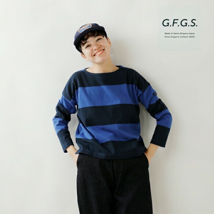 新潟県加茂市のファクトリーブランド。G.F.G.S.(ジーエフジーエス)より、オーガニック コットン ボーダー ボートネック リラックス長袖プルオーバー “Boat-neck relax” をご紹介します。「完全受注生産」のオリジナルカットソー、ORDER BORDER(オーダーボーダー)より、リラックスシルエットのボートネックプルオーバーを作りました。高品質なピュアオーガニックコットンを使用し、柔らかく、快適な着心地。王道のボートネックをすっきりとした丈感で仕上げ、きれいめにも合わせられる1着に仕上がっています。