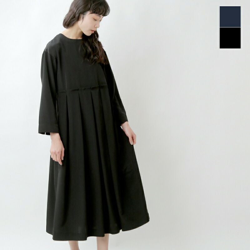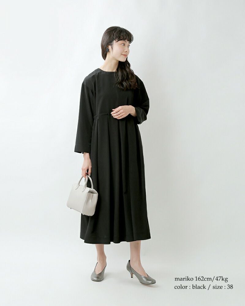 aranciato別注!Si-Si-Si(スースースー)よりaranciato別注 ウエスト切替太プリーツワンピースのご紹介です。品のある光沢感で滑らかな質感の生地を使用した、大人っぽく上品な印象のワンピースです。切替プリーツで豊かなドレープを作り出し、シンプルなデザインに優美なディティールを加えています。結婚式や入学式などのフォーマルなシーンはもちろん、普段使いとしても着て頂ける、活用度の高いワンピースです。