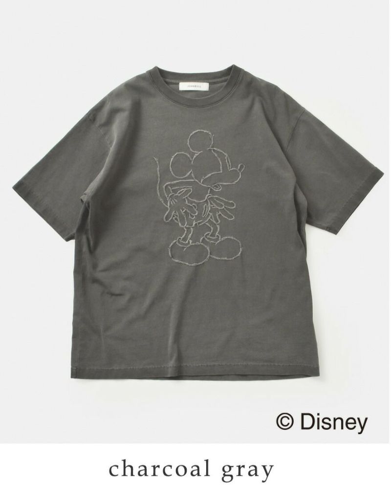 製品染めでムラ感がこなれた風合いを醸すミッキー刺繍が可愛いゆったりTシャツ Johnbull ジョンブル コットン「ミッキーマウス」 刺繍 Tシャツ “「MICKEY MOUSE」 T” jt252c03-rf レディース