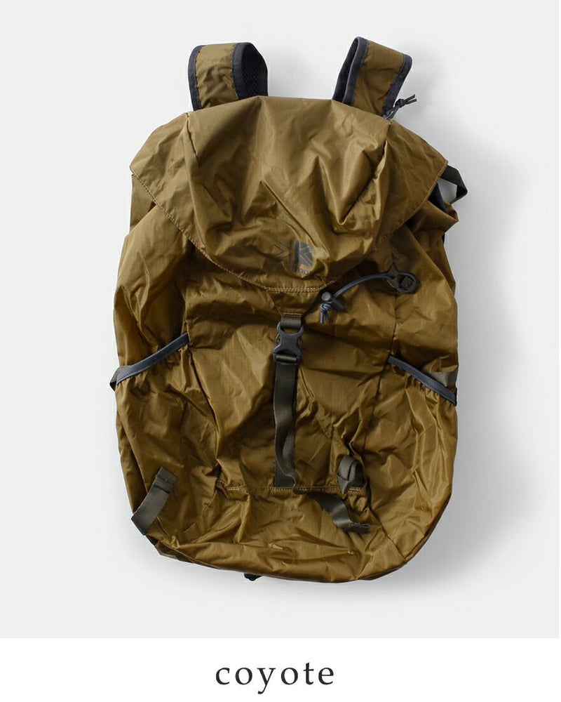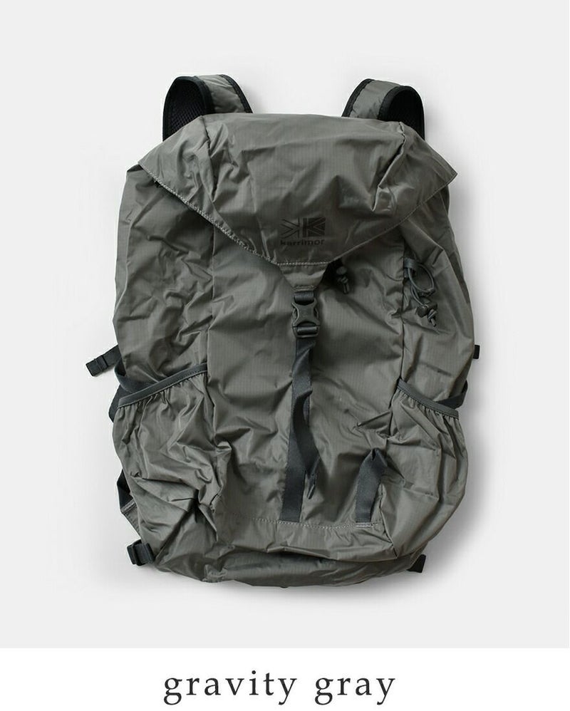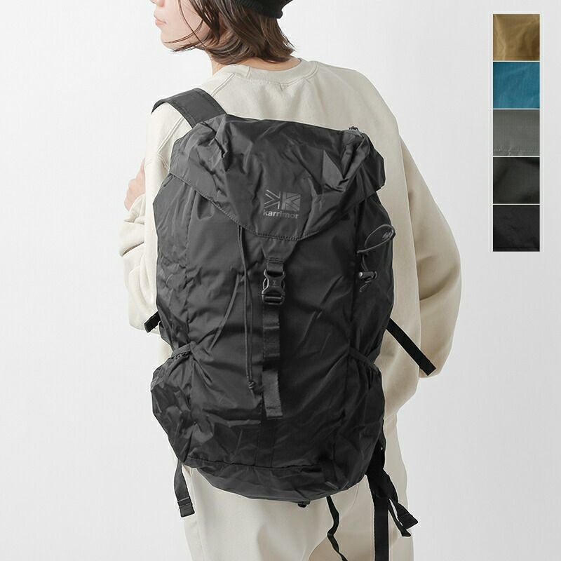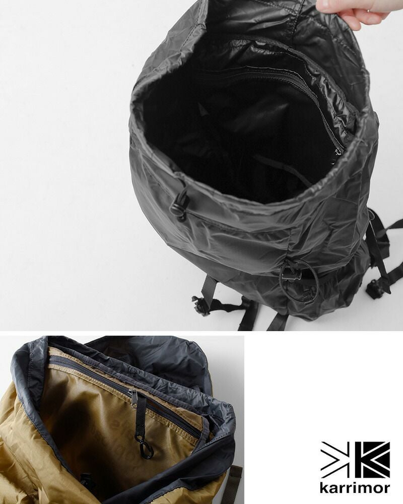 karrimor(カリマー)より、マース トップロード 27 デイパック 27L “mars top load 27”のご紹介です。普段使い・通学・通勤やサブバッグとしても便利なパッカブル仕様の27Lのデイバッグです。荷物が飛び出る心配のない巾着式の開閉仕様。背面とストラップはメッシュ仕様で蒸れにくく、キーフック付き内ポケットやチェスト・ウェストストラップなどパッカブルとは思えない機能性です。軽いので旅行時にもおすすめのアイテムです。