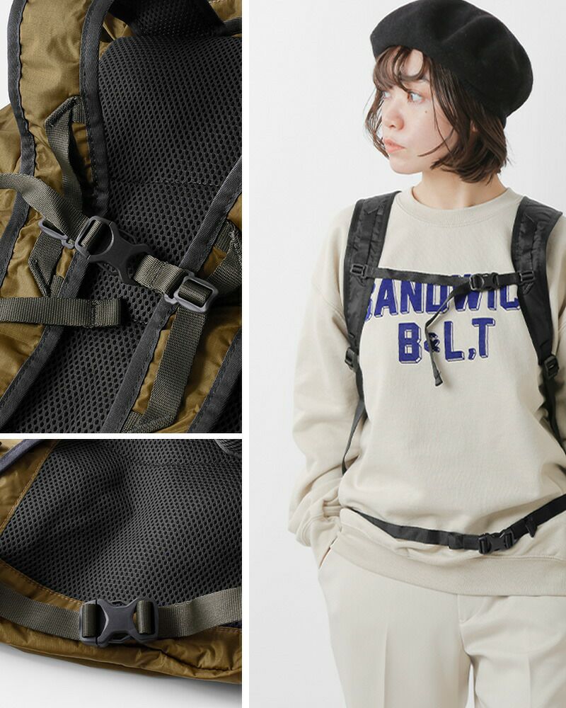 本体を内ポケットに収納できて携行に便利なデイバッグ。山行や旅行の際のサブバッグとして最適な、大きめサイズで頼もしい容量が嬉しい。デイリー使いでも活躍する充実の機能が満載で、シンプルなデザインは男女問わずにおすすめしたいアイテムです。