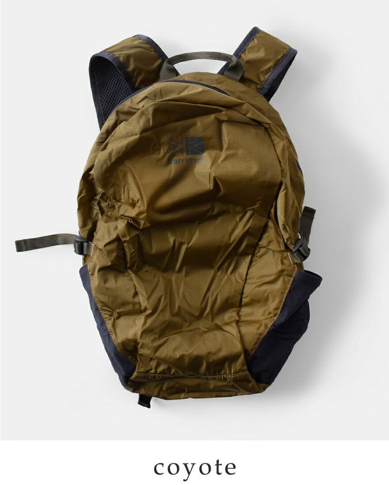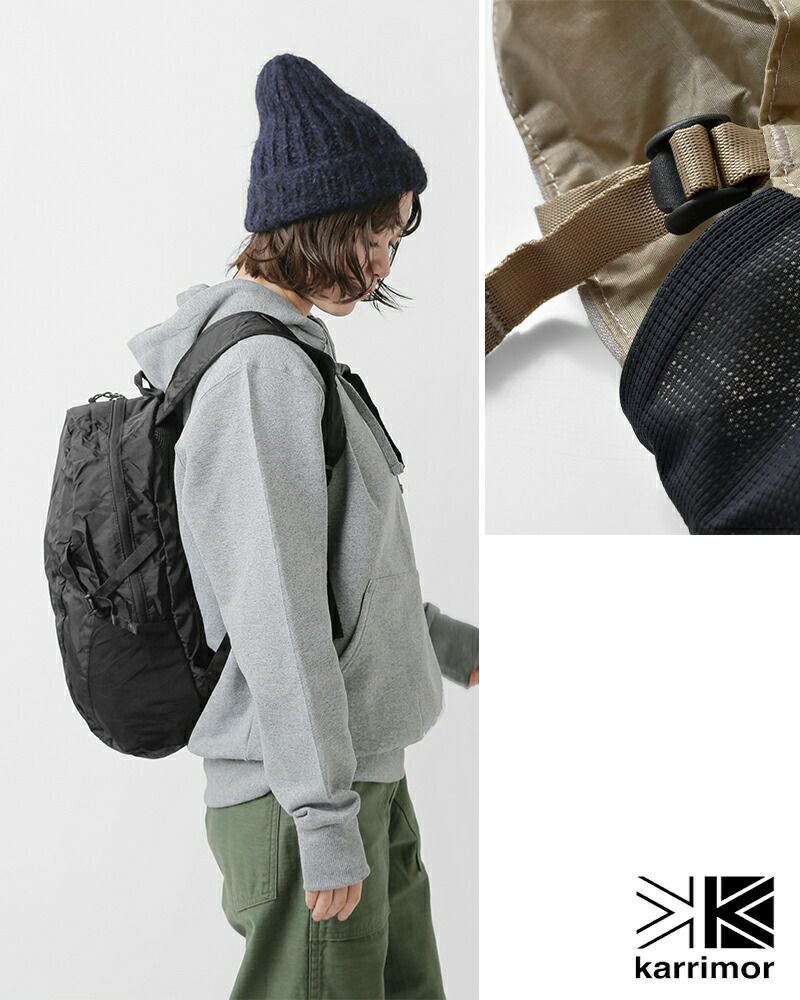 karrimor(カリマー)より、マースパネルロード18 ナイロン パッカブル デイパック 18L “mars panel load 18”のご紹介です。普段使い・通学・通勤やサブバッグとしても便利なパッカブル仕様の18Lのデイバッグです。ダブルファスナーで開け口が大きく開いて荷物の取り出しも楽々。背面とストラップはメッシュ仕様で蒸れにくく、キーフック付き内ポケットやチェストストラップなどパッカブルとは思えない機能性です。軽いので旅行時にもおすすめのアイテムです。