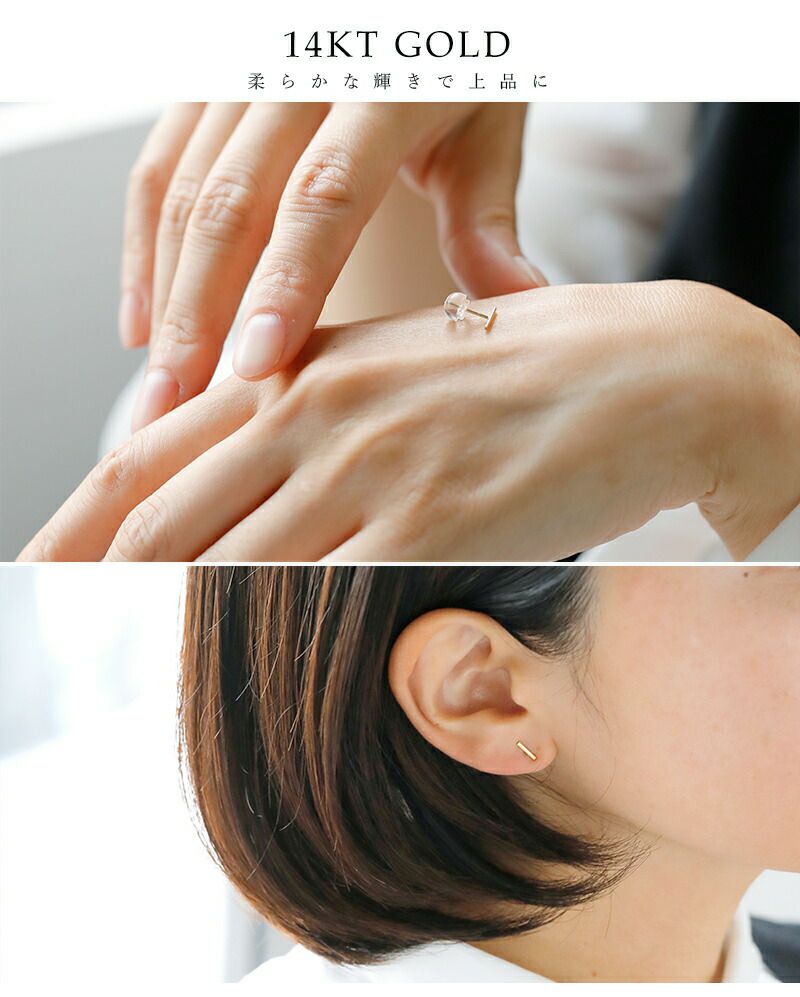 小ぶりなトップは余分なディテールを省いた華奢で直線的なデザイン。 さりげない存在感でどんなテイストのファッションにも馴染みます。 着脱がしやすいシリコンのキャッチが付いています。