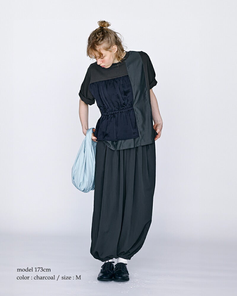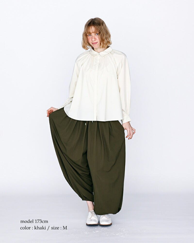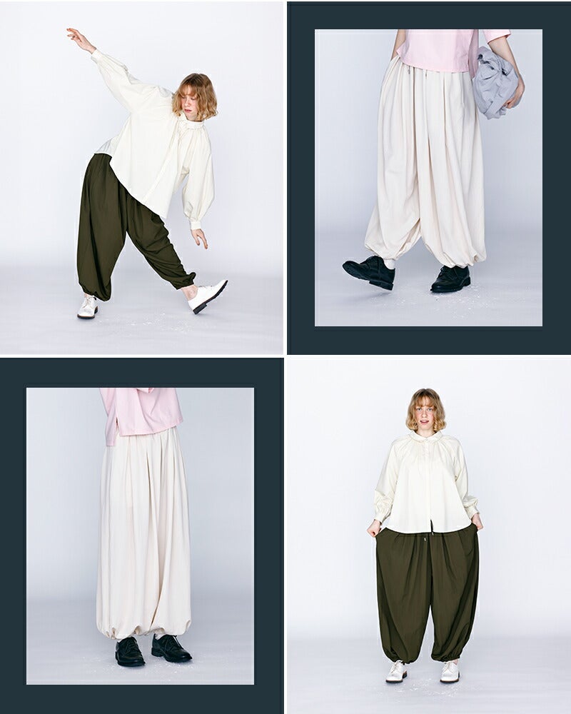 ●裾にはゴムを配しキュッと締まったバルーンシルエットを実現しました。