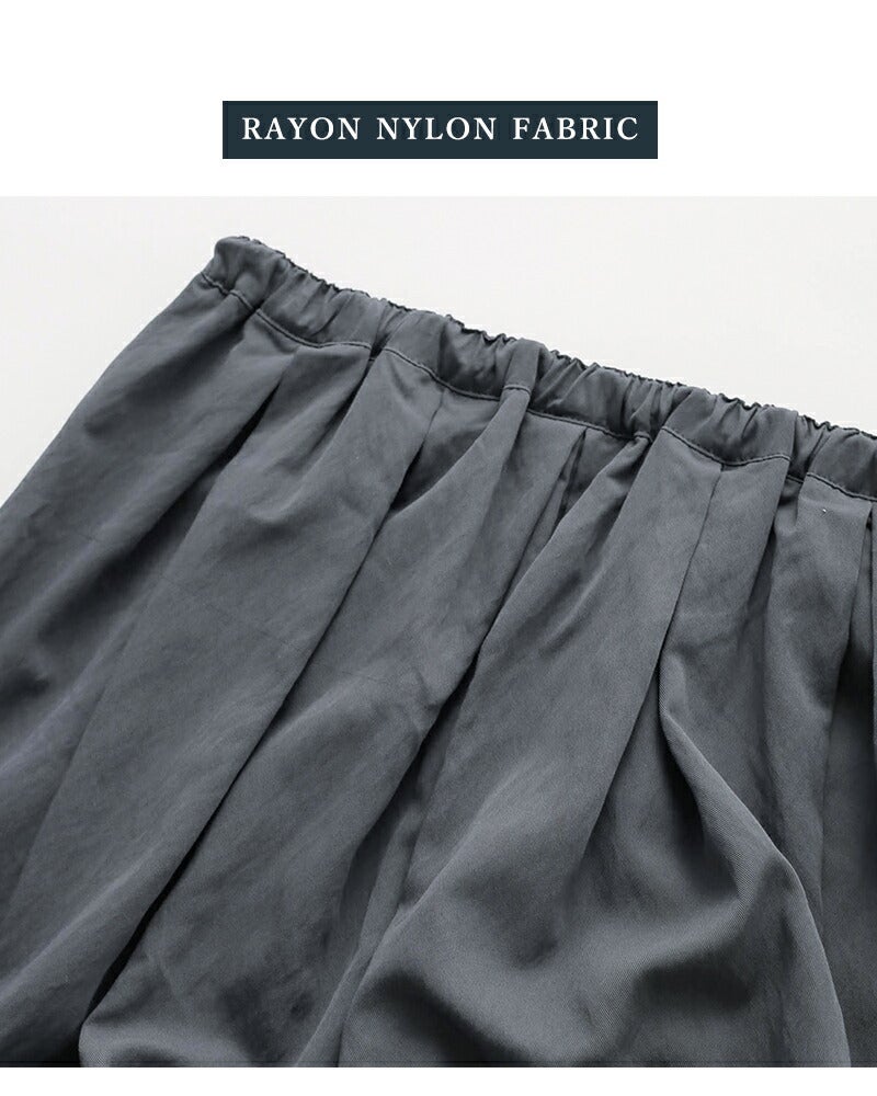 kelen(ケレン)より、タックデザイン バルーン イージーパンツ “QIUN”のご紹介です。 素材には、清涼感がありサラッとした肌触りのレーヨンナイロン生地を使用。シワになりにくく、とろみのあるドレープ感が上品な印象を演出します。 透け感を気にせず着用できる、安心感のある程よい肉感も嬉しいポイント。 ボリュームのあるデザインながら、腰まわりからヒップにかけてはすっきりとした美しいシルエットに。 ウエストはゴム仕様で、ドローコードによりフィット感の調整が可能。裾には柔らかなゴムを配し、締め付け感のないイージーな穿き心地を実現しました。 デイリーからリラックスシーンまで、軽やかに取り入れたい一本です。