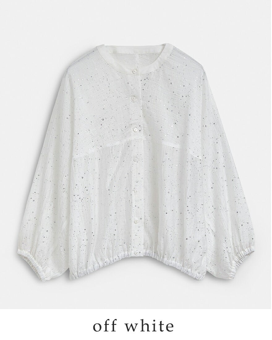 さりげなく輝くラメ糸のドット刺繍上品な華やかさを添えるギャザーブラウス 【クーポン対象】kelen ケレン ラメ糸ドット刺繍 ギャザー ブラウス “CAFUN” lkl26hbl2289 レディース 2026ss新作 春夏