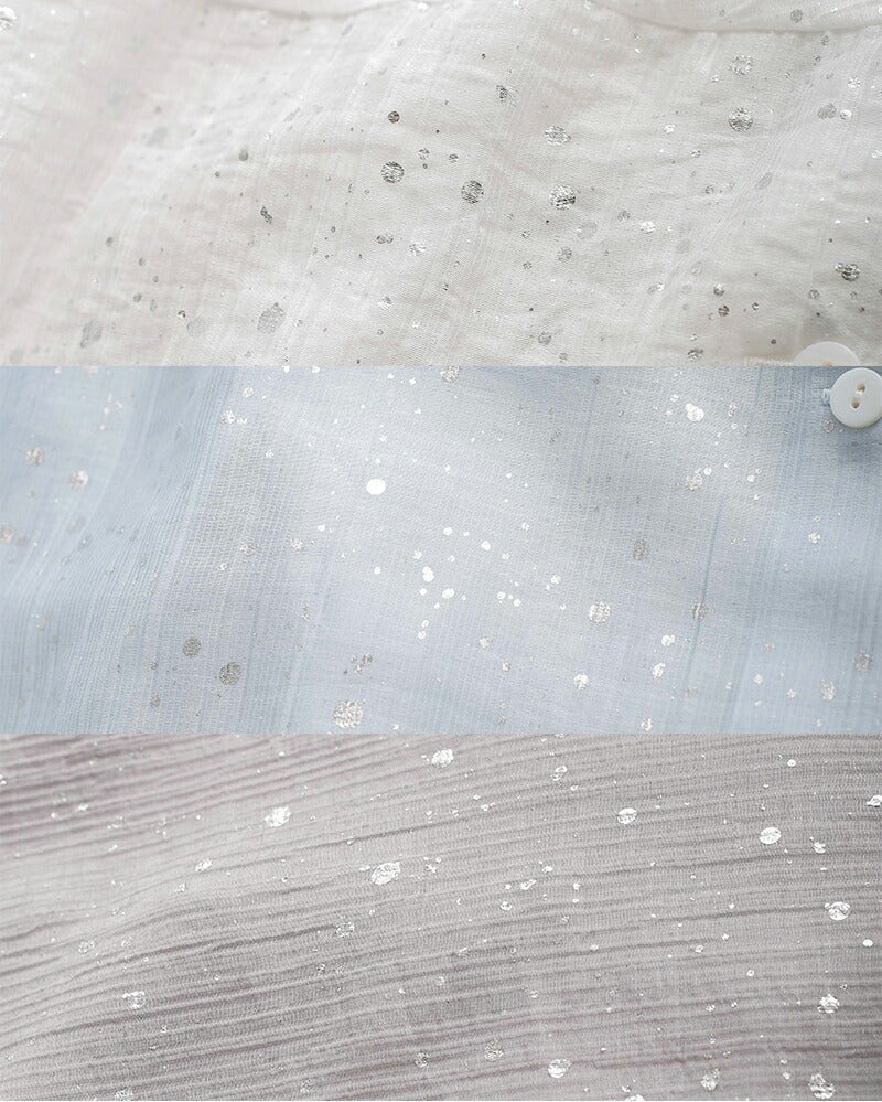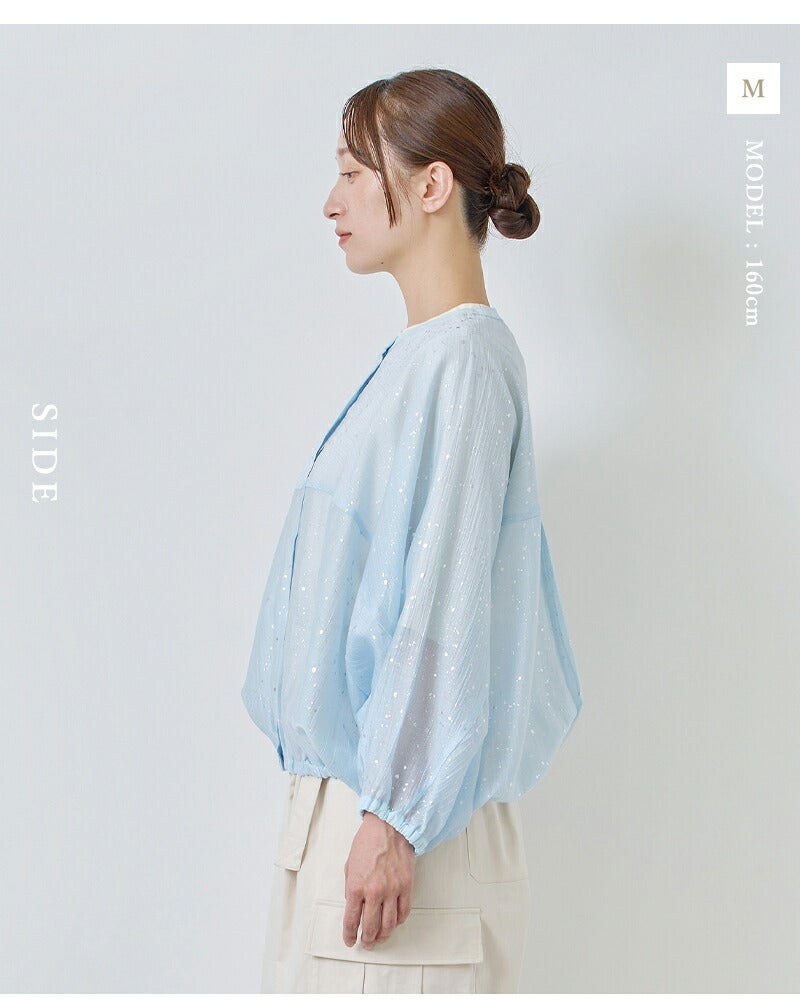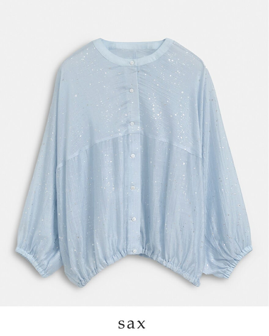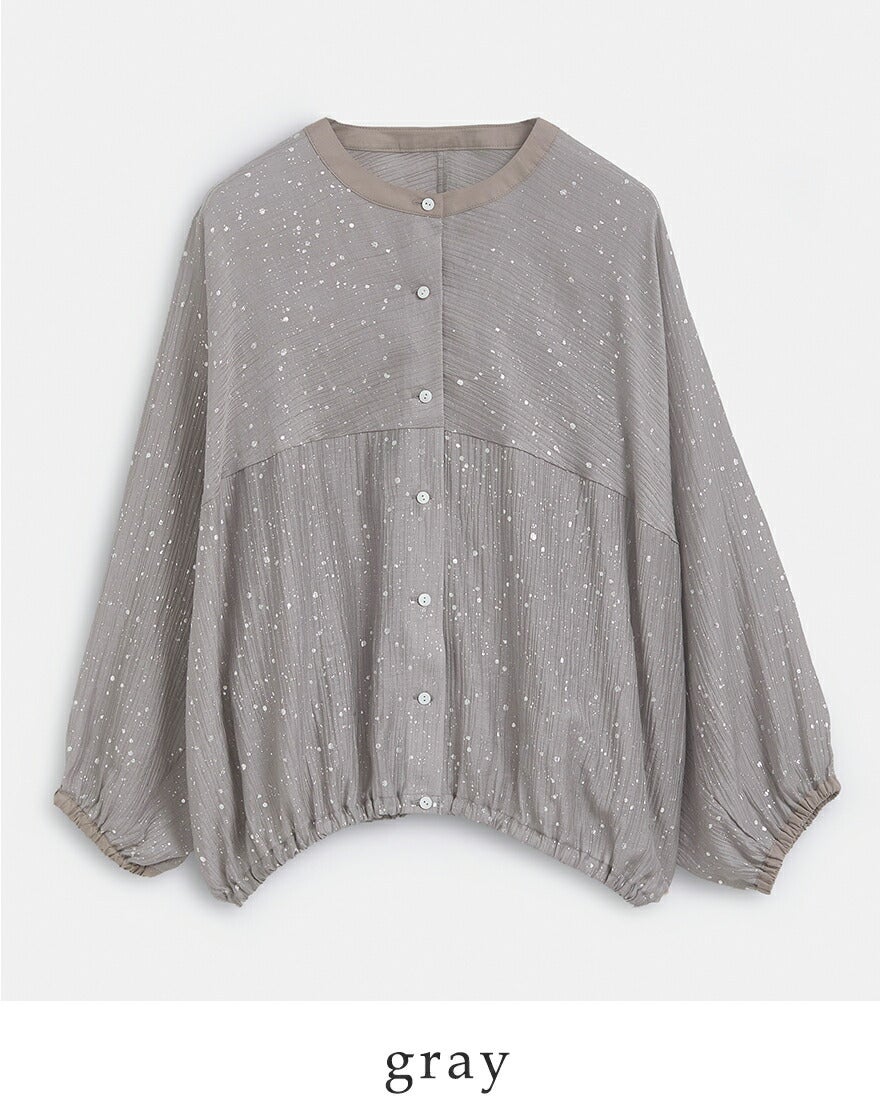 シアー素材繊細箔プリント存在感あるデザイントップス大人らしい印象ドルマンスリーブバルーンシルエットリラックス感立体感レイヤードスタイル空調対策 kelen ケレン 箔プリント バルーンシルエット ブラウス “SNOW” lkl26hbl2284 レディース 2026ss新作 春夏