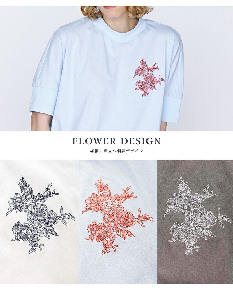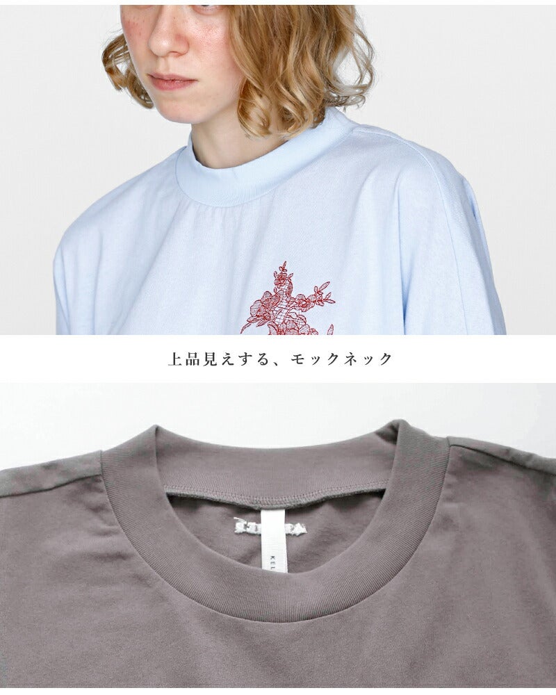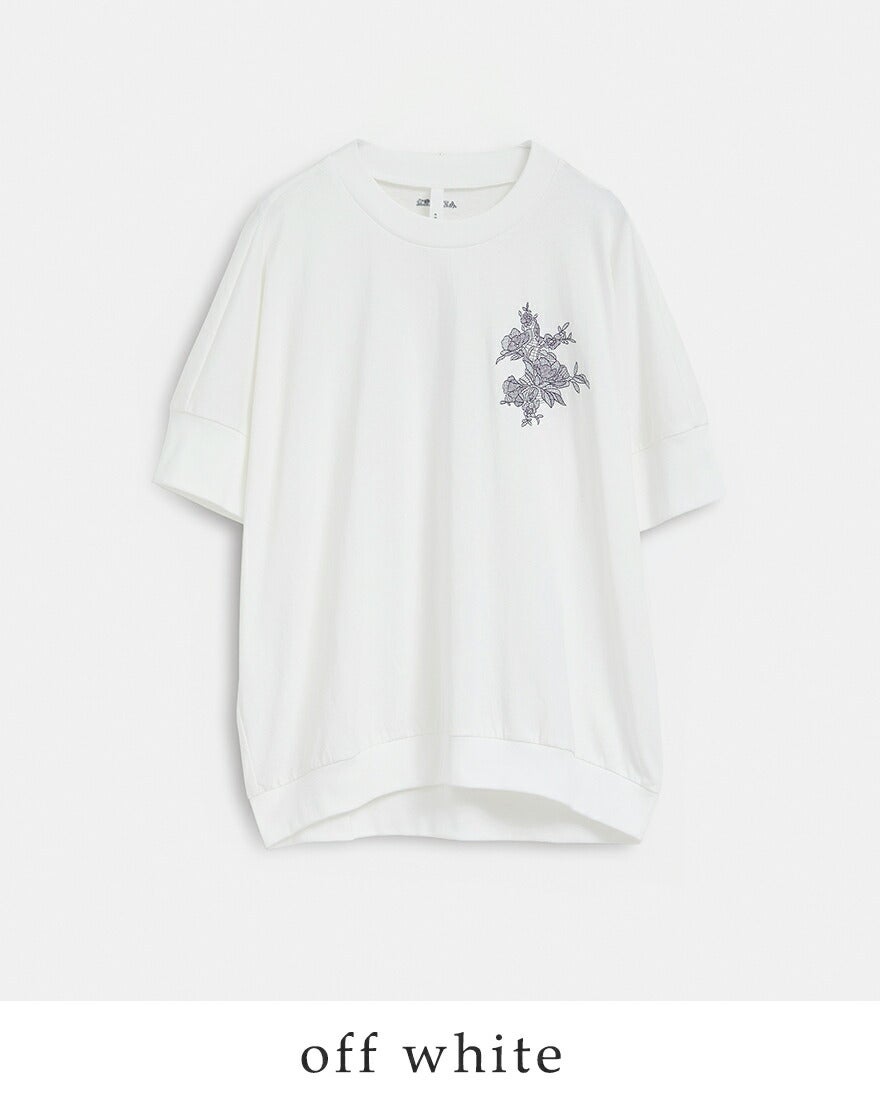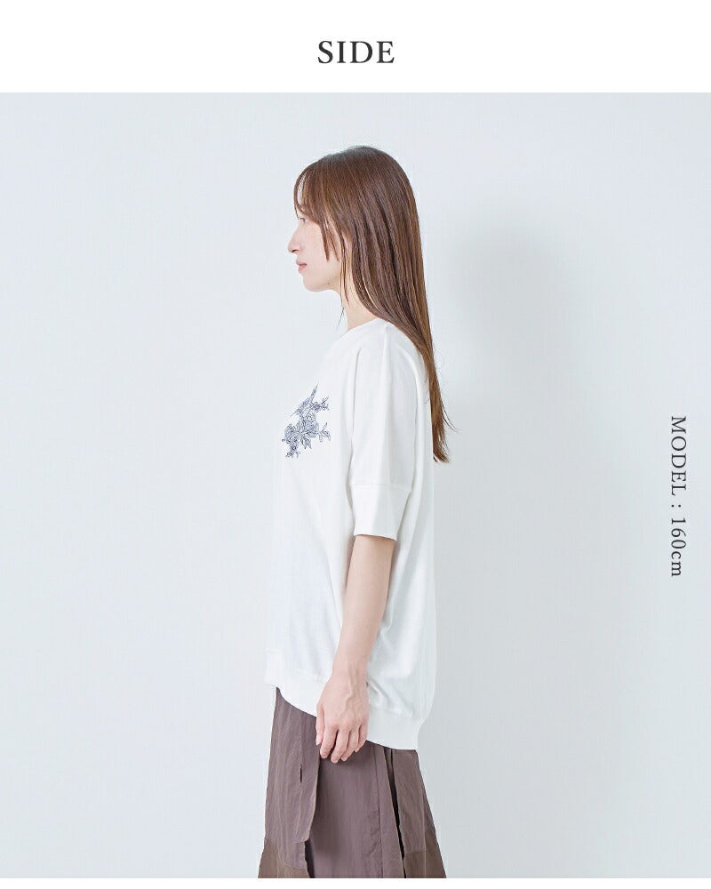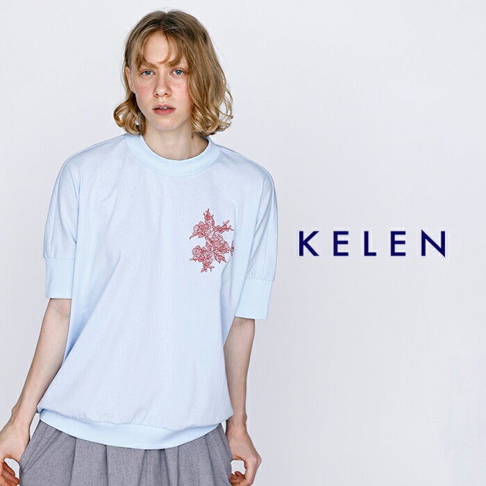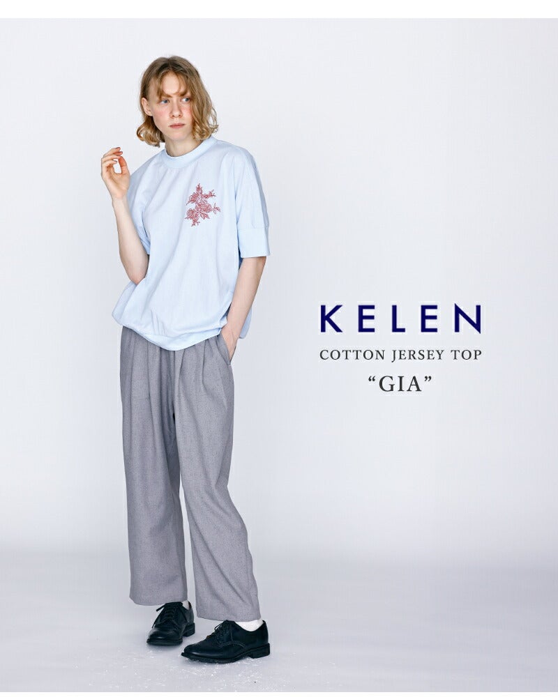 花柄の刺繍をあしらった半袖リラックスシルエットTシャツ kelen ケレン コットンジャージー フラワーモチーフ刺繍デザイン トップス “GIA” lkl26hcs2021 レディース 2026ss新作 春夏