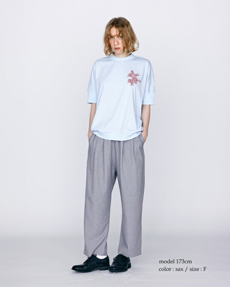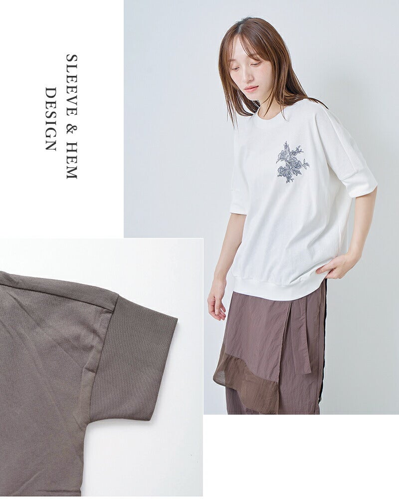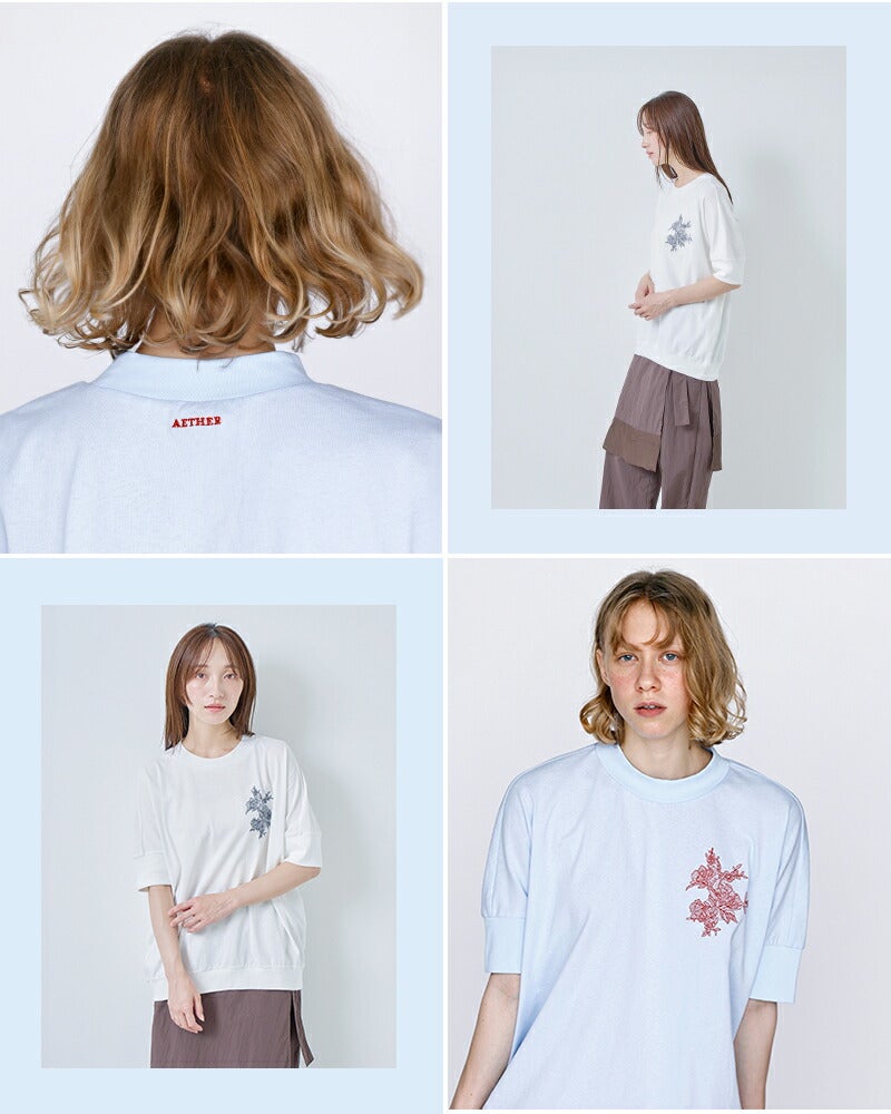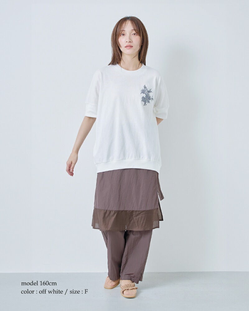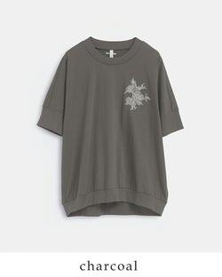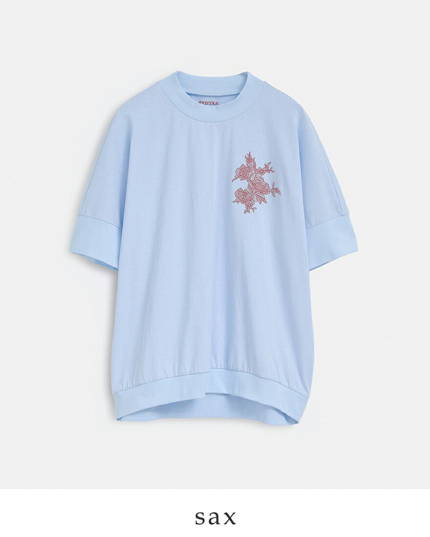花柄の刺繍をあしらった半袖リラックスシルエットTシャツ kelen ケレン コットンジャージー フラワーモチーフ刺繍デザイン トップス “GIA” lkl26hcs2021 レディース 2026ss新作 春夏