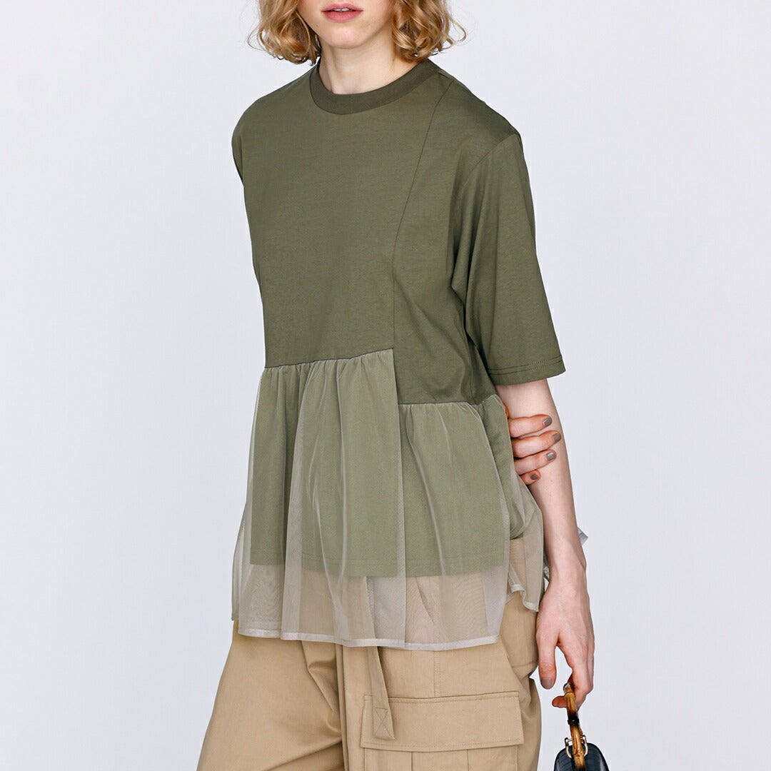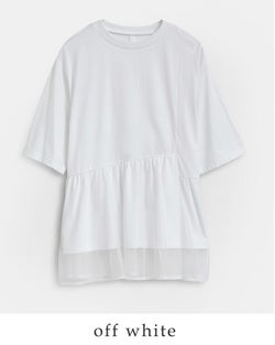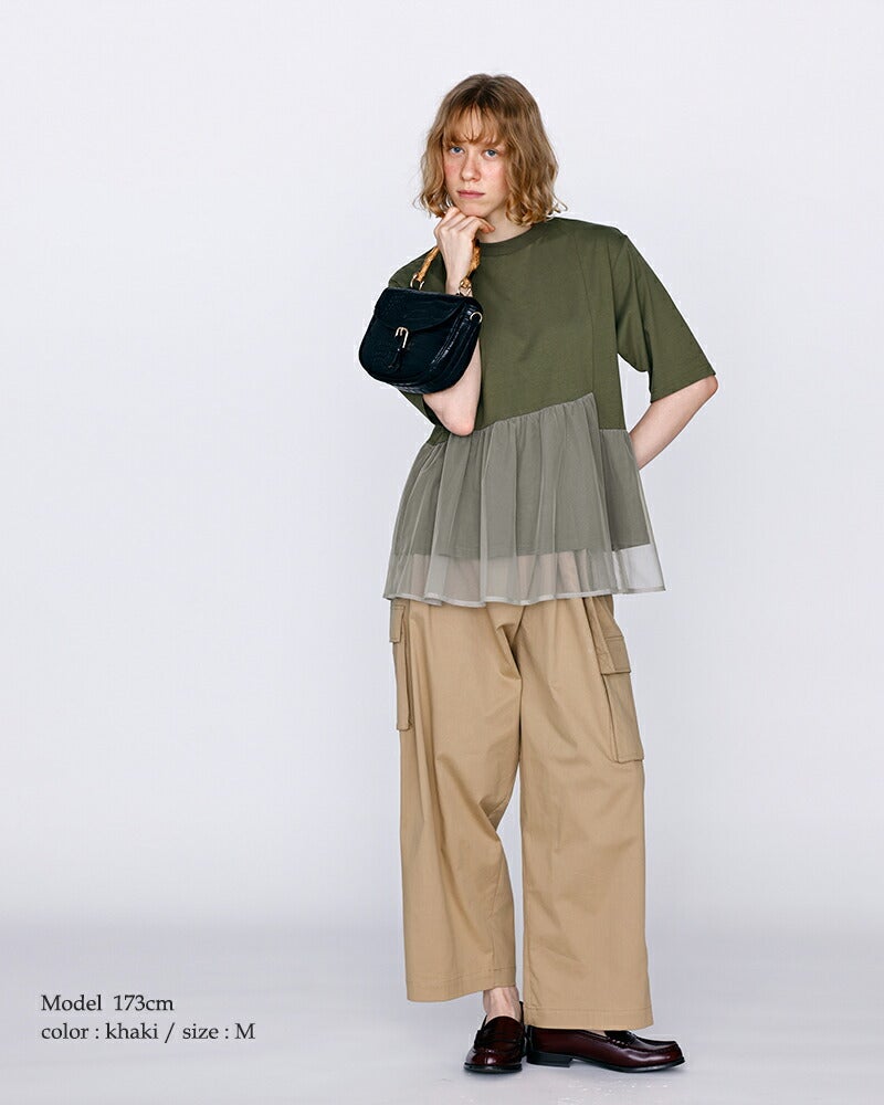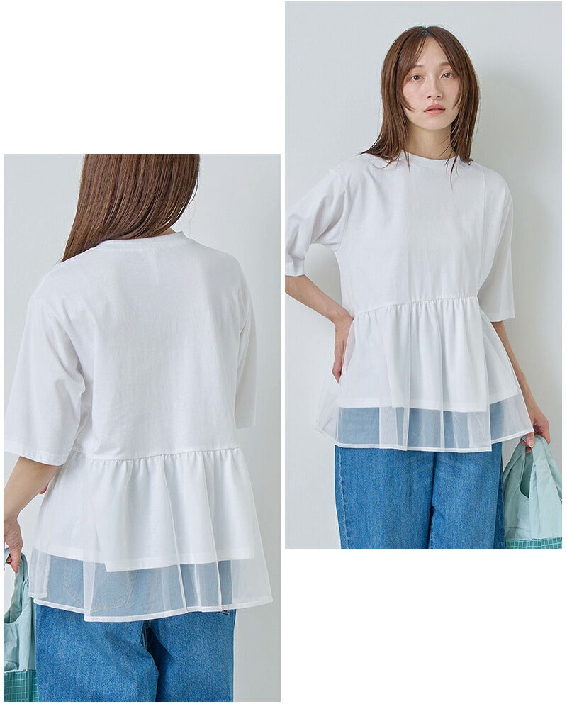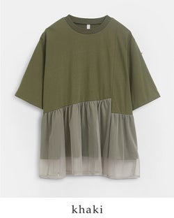カットソーの上にオーガンジー素材を重ねたレイヤードが涼し気なデザイントップス 【クーポン対象】kelen ケレン シアー レイヤードデザイン トップス “SAN” lkl26hcs2022 レディース 2026ss新作 春夏