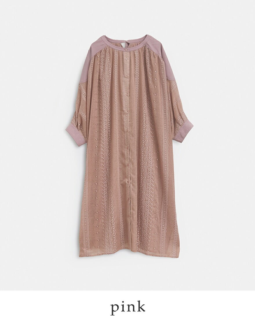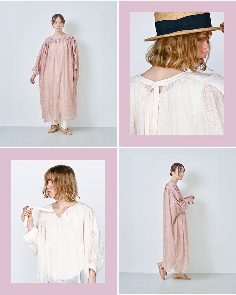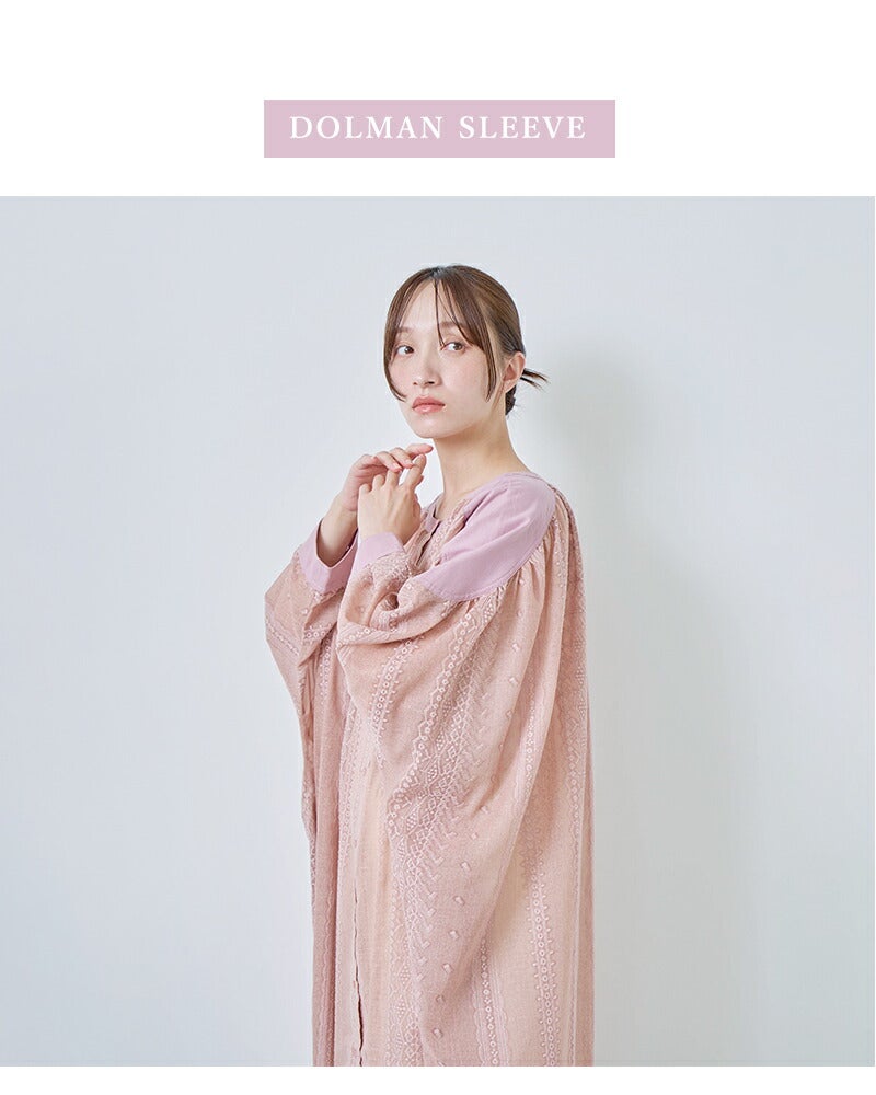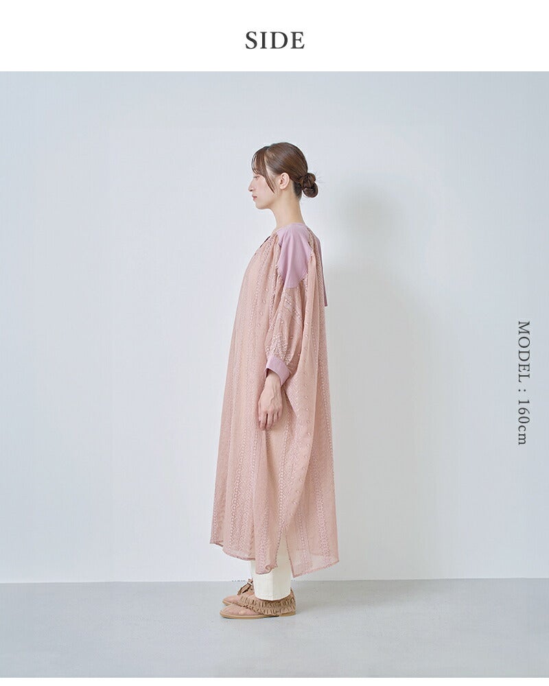 前後を入れ替えて使える2wayデザインとリラックス感のあるオーバーシルエットが特徴のシアーワンピース kelen ケレン 前後2way 刺繍シアー ドルマンスリーブ ワンピース “TOKA” lkl26hop2135 レディース 2026ss新作 春夏