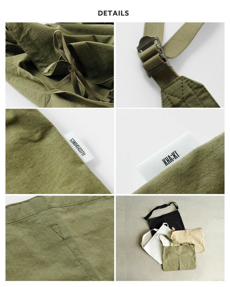 kha:ki(カーキ)より撥水 リップストップ サコッシュ “A-03 SACOCHE 3.0”のご紹介です。ナチュラルな表面感がコーデに自然に溶け込む、大きめサイズのサコッシュ。使い勝手を考慮した計4箇所収納できる内ポケット布がつきます。サイドに配置されたピスネームが程よいアクセントに。撥水性に優れた綿ナイロンのリップストップを生地を使用。コーデを選ばずに合わせられ、A4サイズも楽々収納できるので通勤・通学にも大活躍のサコッシュです。