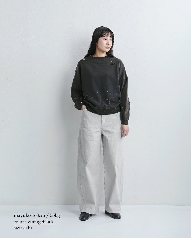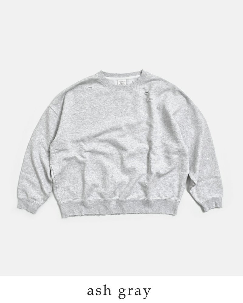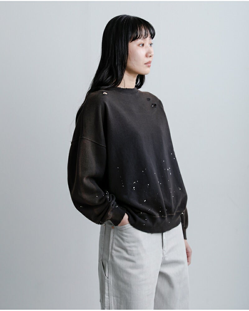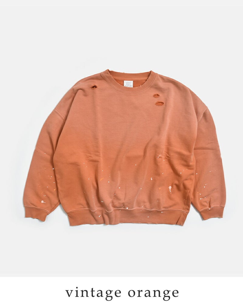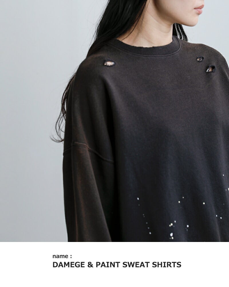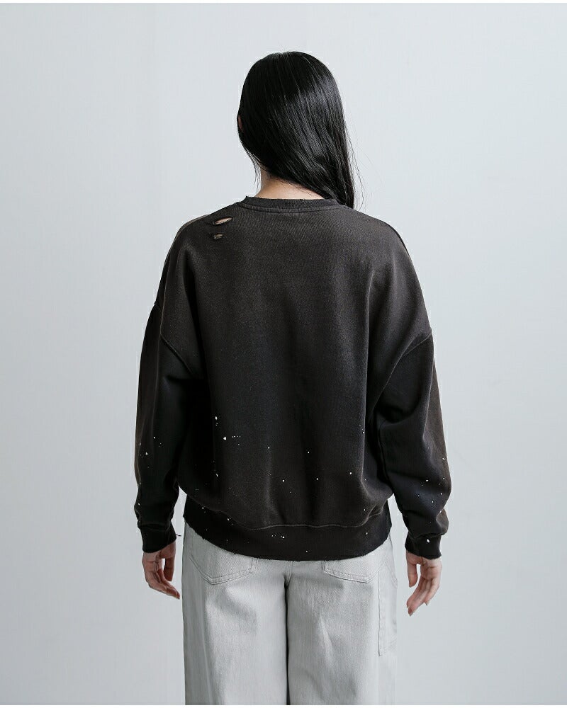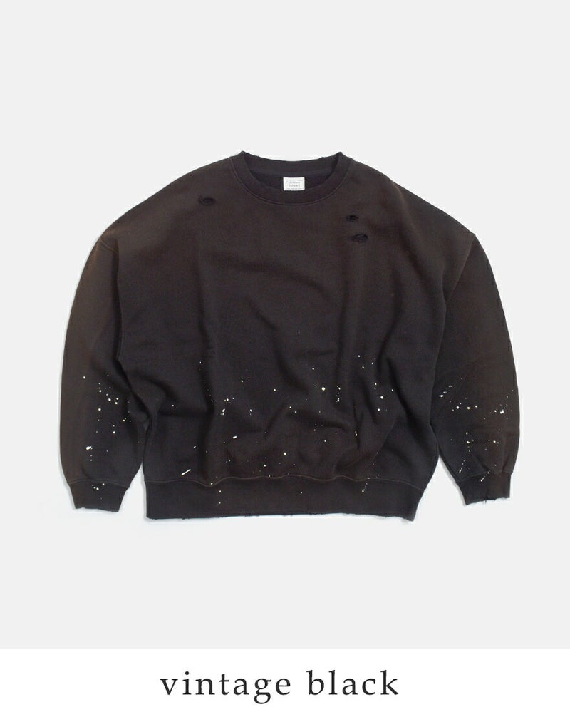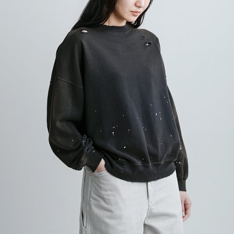 ラフさの中にこだわりを感じさせる、表情豊かなダメージペイントスウェットシャツ。