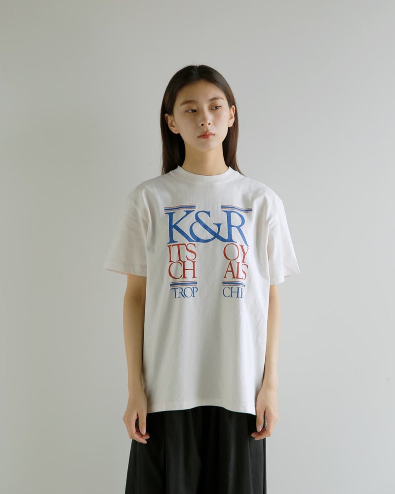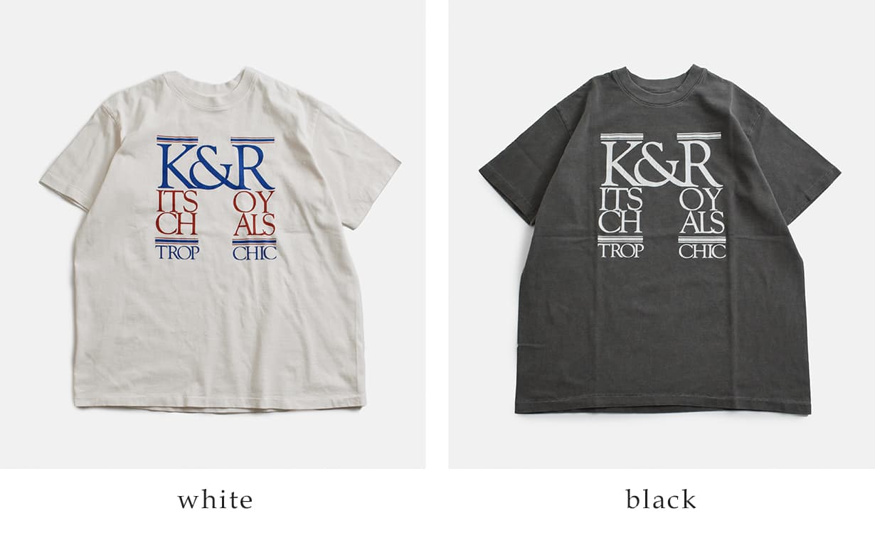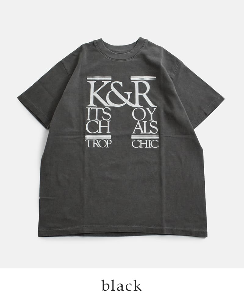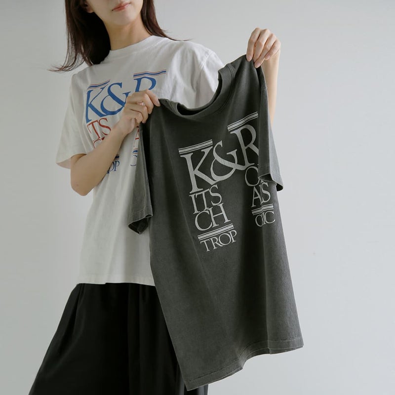 製品染めを施した生地がヴィンテージような風合いのTシャツクラシカルなグラフィックオーバーサイズ KURO クロ ラウンドシェイプ ダイ プリント Tシャツ 17/- ROUND SHAPE DYED TEE K&R-Kitsch&Royals 964274 2026ss新作 レディース
