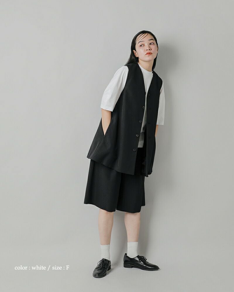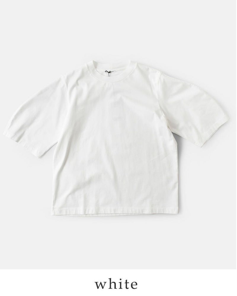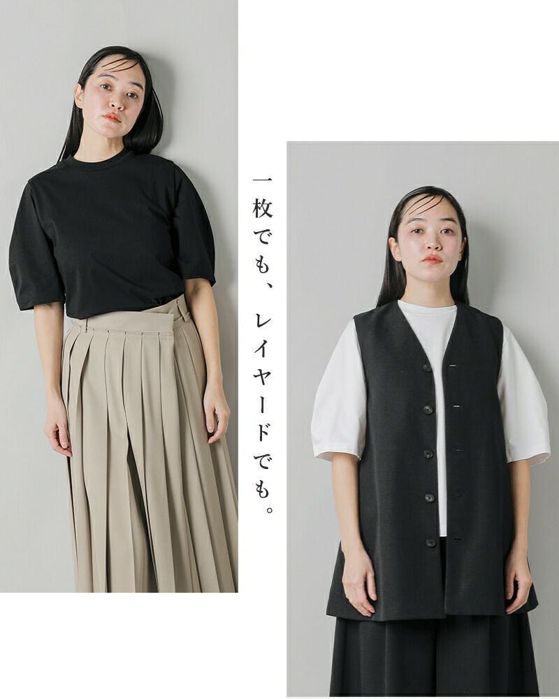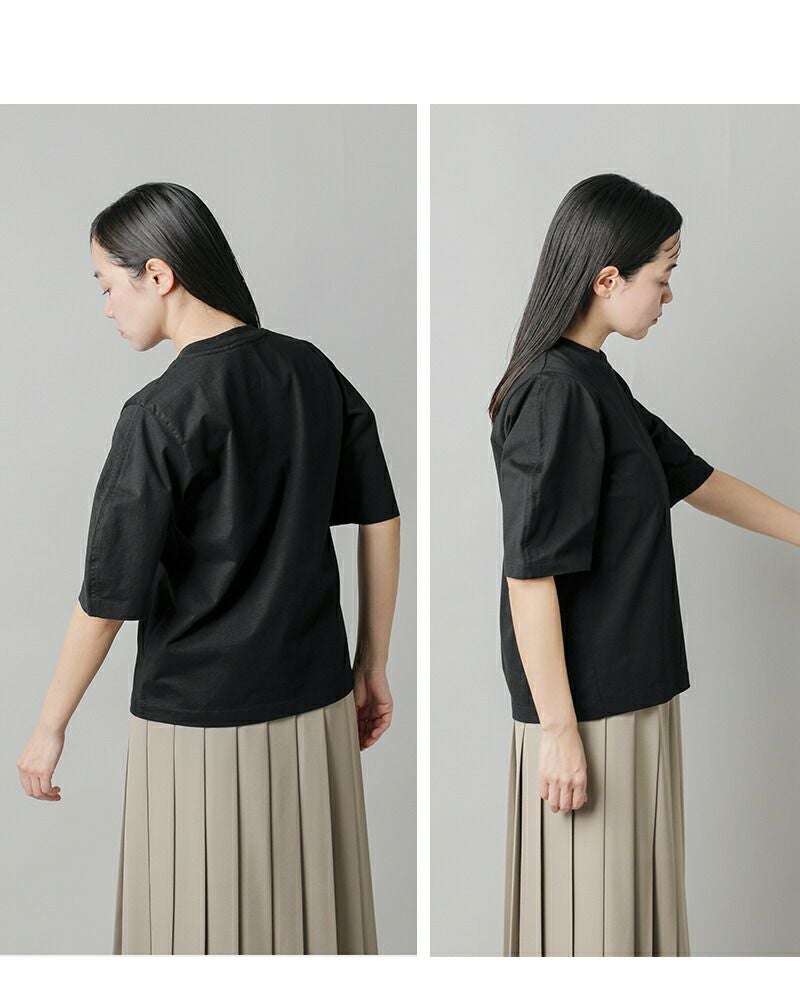 丸みがポイントの半袖丈のクレセントスリーブ。定番に使いやすいホワイトとブラックの2色展開です。
