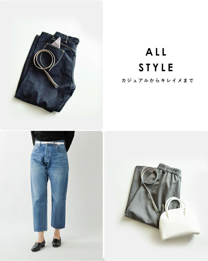 デニムやカーゴパンツなどのカジュアルアイテムから、スラックスなどきれいめアイテムにも合わせられるのが嬉しいポイント。ワンピースのウエストマークにもおすすめです。
