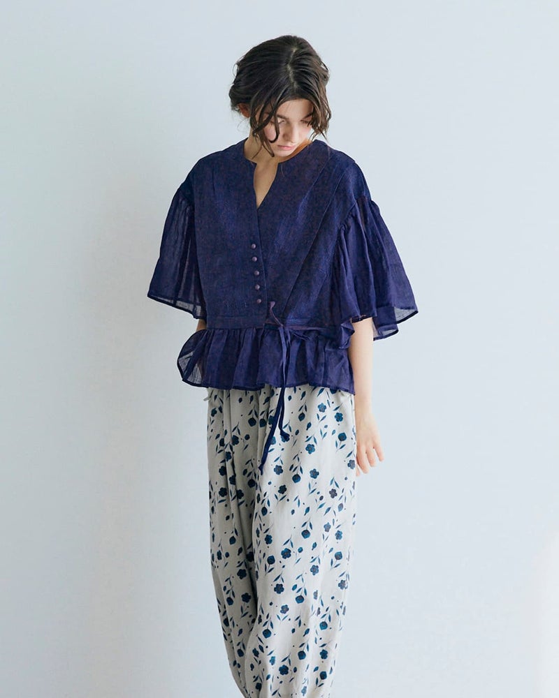 風をまとう、優美なインディゴカシュクールブラウス
