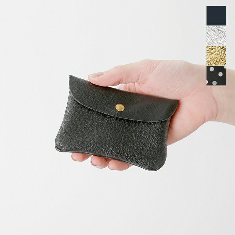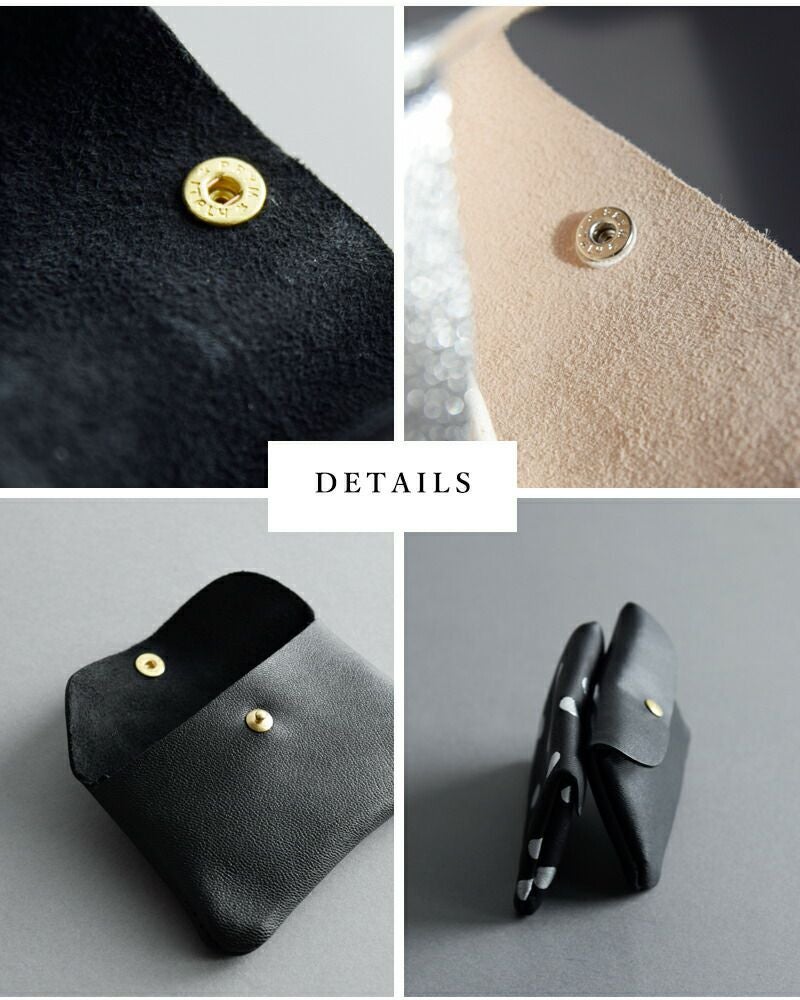 薄くても丈夫な山羊革を使用。手にやさしく馴染む風合いが使い勝手よく、ポケットに入れてもごわつきません。発色の良さやシボ感も魅力で、美しいシンプルな財布を提案しています。シャイニーに輝くシルバーや、ドット柄をシルバーで表現した、個性派デザインもオススメです。使い込むほどに馴染んで表情が変化していくのも楽しみです。