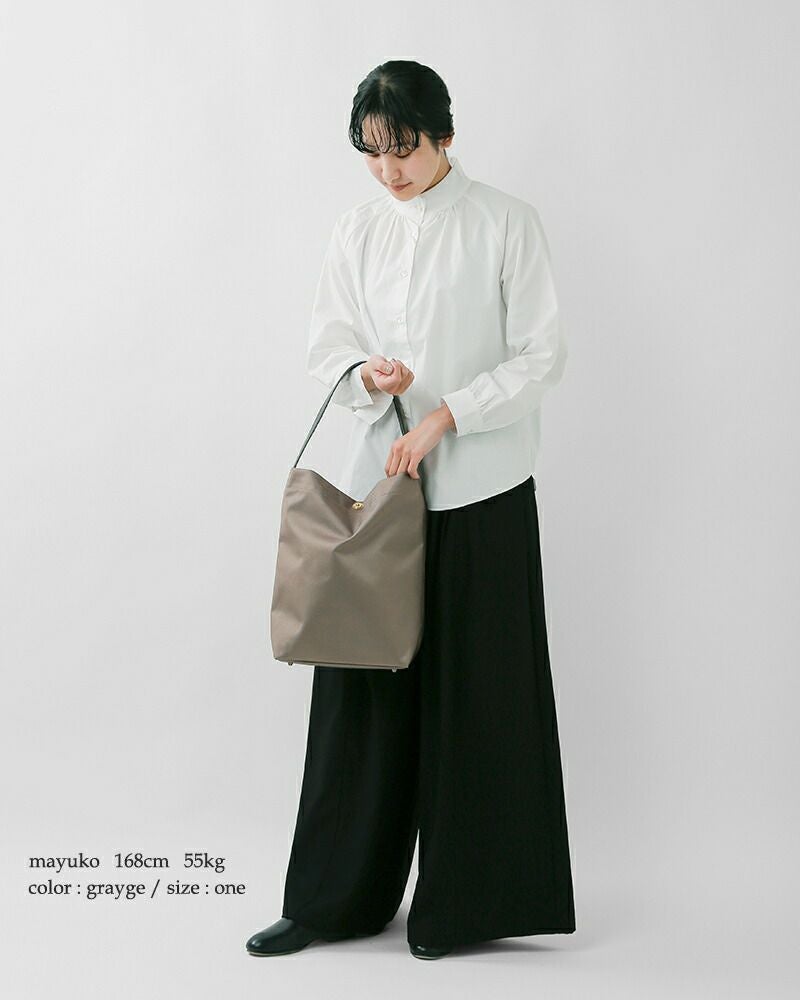MARINEDAY(マリンデイ)の人気アイテムFREDERICKの66ナイロン素材が登場。がポイントのショルダーバッグ。ワンショルダーの縦型のシンプルな形状がコーデ全体の中にさりげなく溶け込みスタイリングに取り入れやすい仕上がりに。ハンドル部分は栃木レザーを使用し高級感もありカジュアルながら上品なクオリティーとなっています。A4サイズの書類も縦向きに入るサイズ感で、普段使いにちょうどいいデザインです。