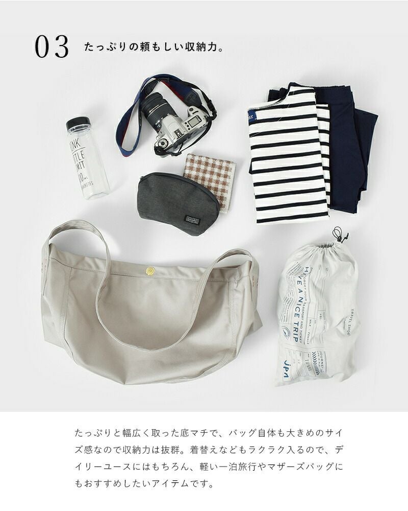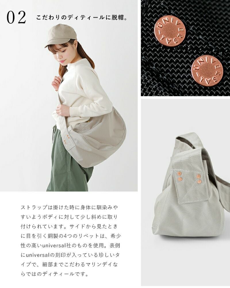 MARINE DAY(マリンデイ)より、ナイロンショルダーバッグ“FREE BLUE”のご紹介です。MARINEDAYの大人気バッグ「blueblue」をスタイリッシュさと機能性はそのままに、サイズ感を大きくした使い方が広がるバッグです。新聞配達で使われていた形を表現したワンショルダーバッグは、半月型のボディに太いショルダーが特徴的。デイリーユースはもちろん、たっぷりの収納力はマザーズバッグとして、一泊旅行のバッグとして…など様々な用途でお使いいただけます。