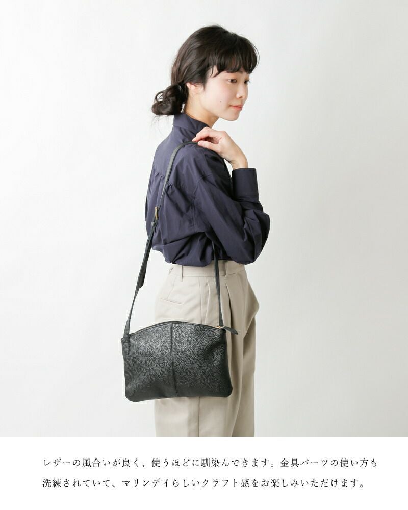 柔らかな シュリンク カウ レザー を使用した シンプルな ショルダーバッグ【送料無料】 【30%OFF】MARINE DAY マリンデイ