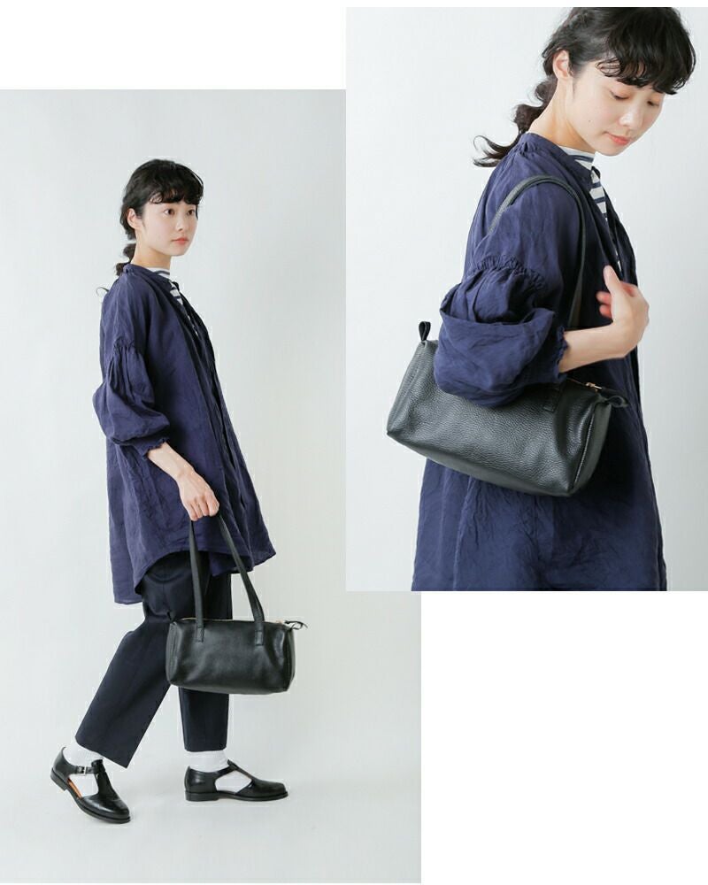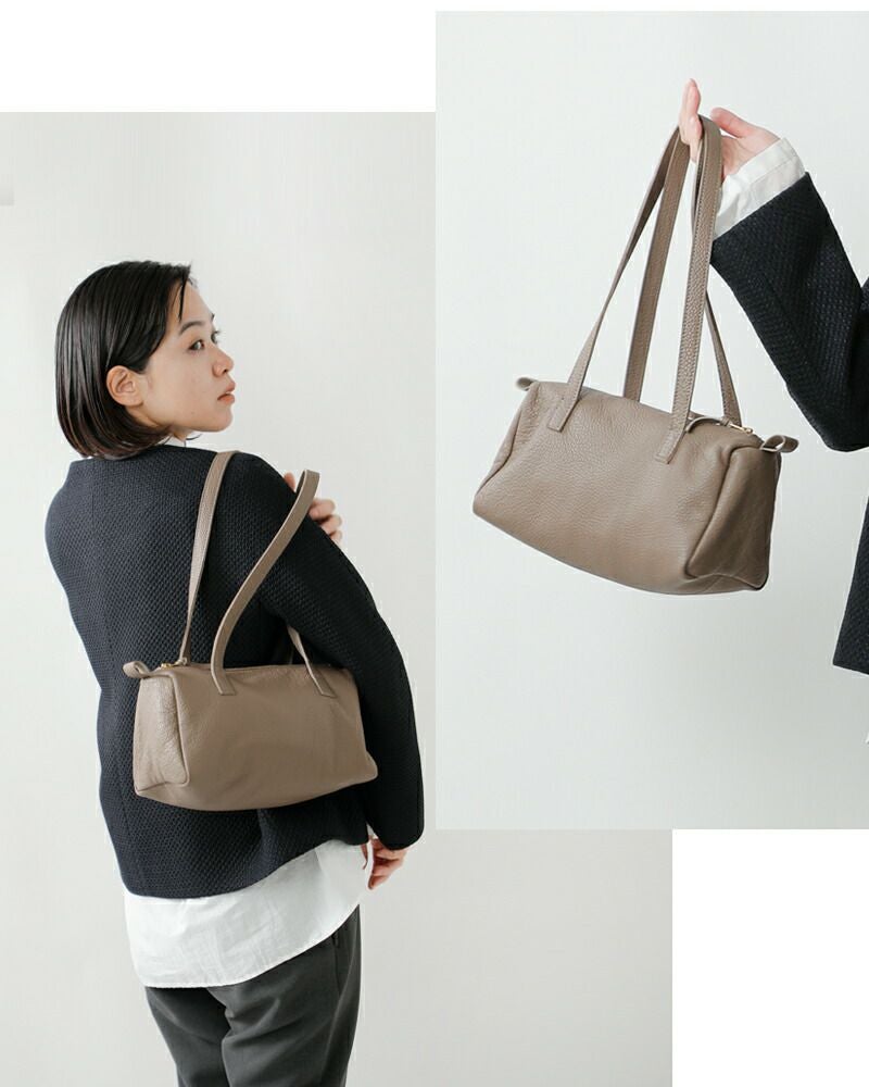 ころんとした筒型が可愛いコンパクトなサイズ感のボストンバッグ。無駄をそぎ落し、フォルムの美しさ・素材の上質さを最大限に引き出した美しいバッグです。