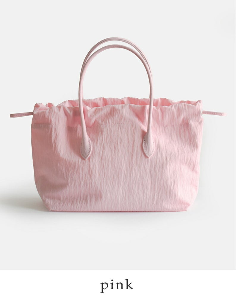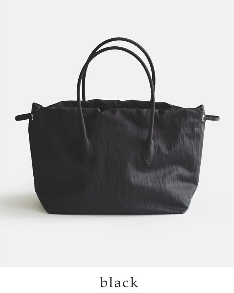 そのままだとベーシックな舟型。両サイドのドローコードを引けばくしゅっとした質感が可愛い巾着型にスタイルチェンジ。持ち物の多さやコーデによって気分を変えられるのもうれしいですね♪